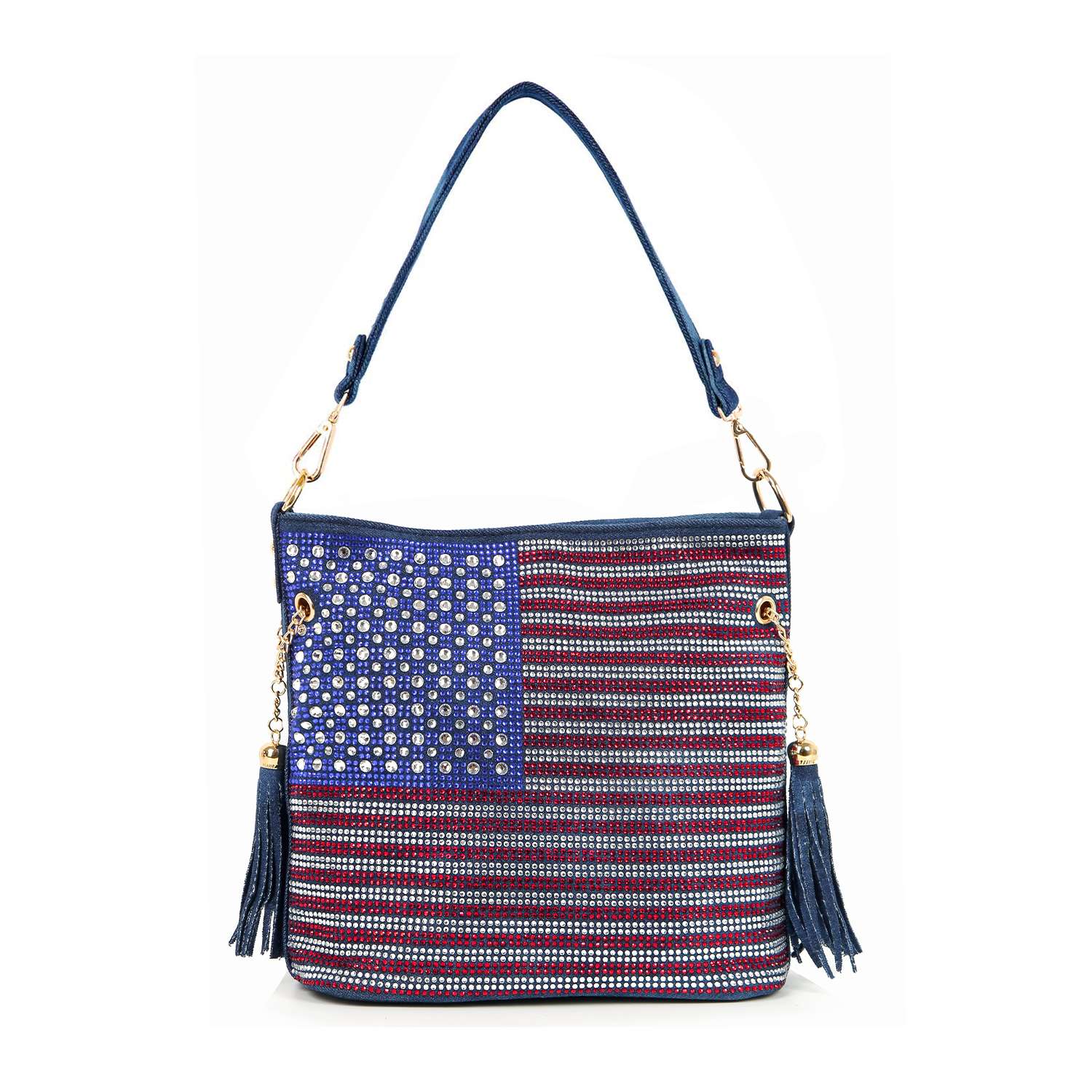 2 side tassel and chain accents.