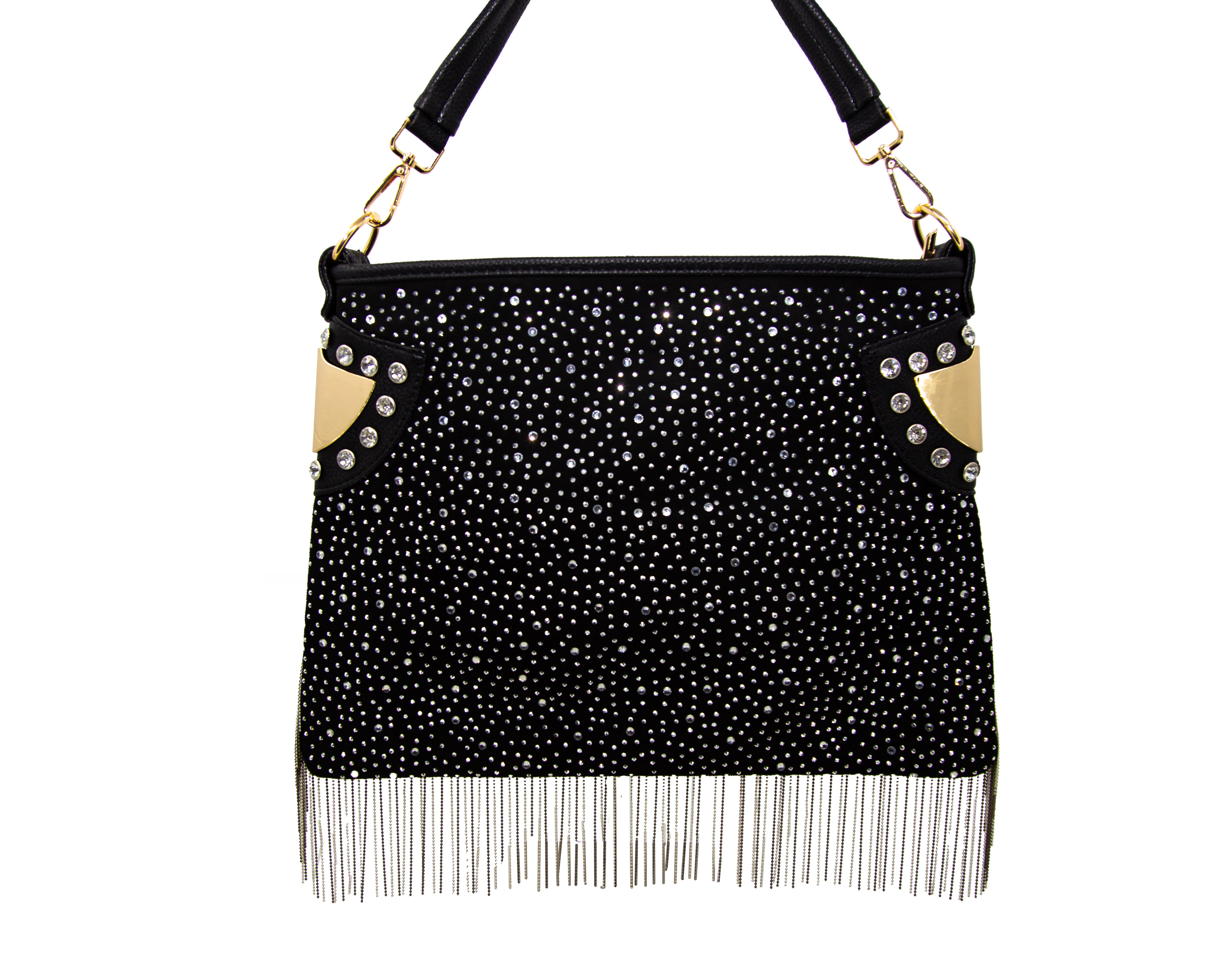 An effortlessly hip silhouette, this fashion hobo is sprinkled with stones and features beaded fringe.