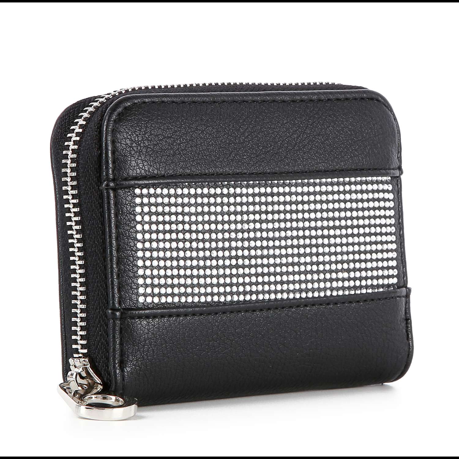 Accordion wallet with zip-around closure. Interior zip divider pocket, multiple currency slots and card slots. Faux leather...
