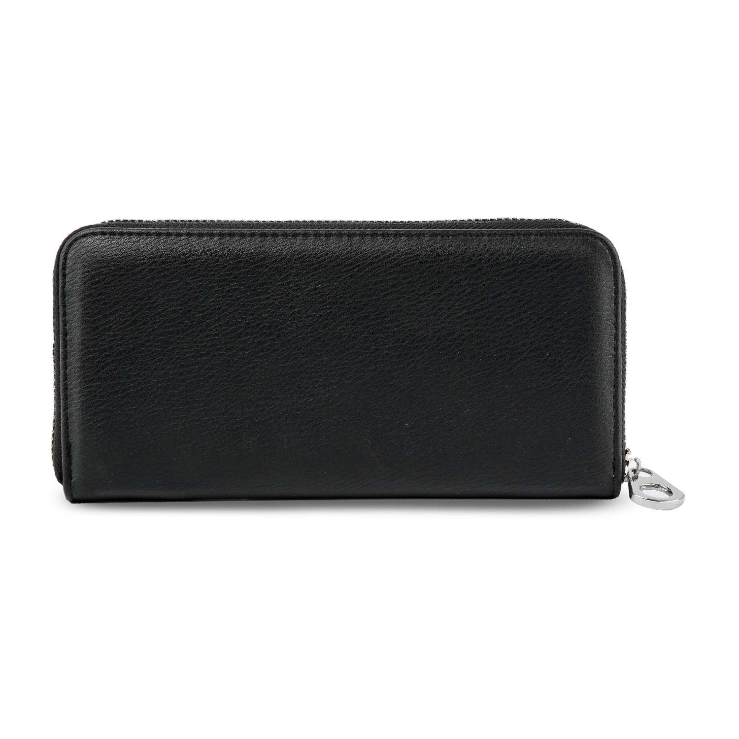 Interior zip divider pocket, multiple currency slots and multiple card slots.