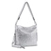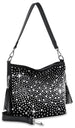 Go for full on glam! This fashion hobo doubles as a crossbody sling, is made of a soft faux leather and full of rhinestone bling.