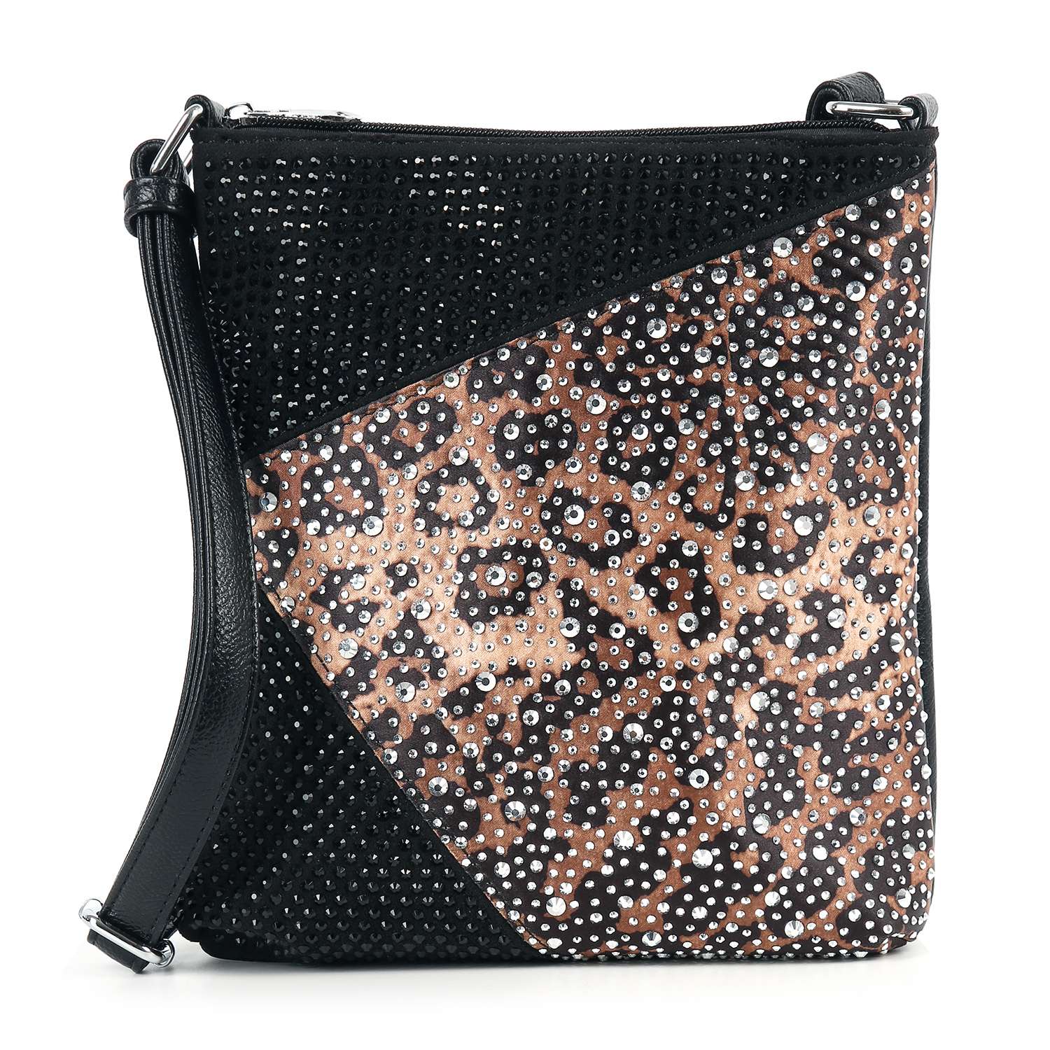 Walk the line between fiercely feline and polished edge. The clean design of sparkling Leopard print and gorgeous black stones give this minimalist crossbody sling its fresh appeal.