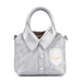 What a unique bag! A spectacular faux leather tote that looks like a stylish shirt!