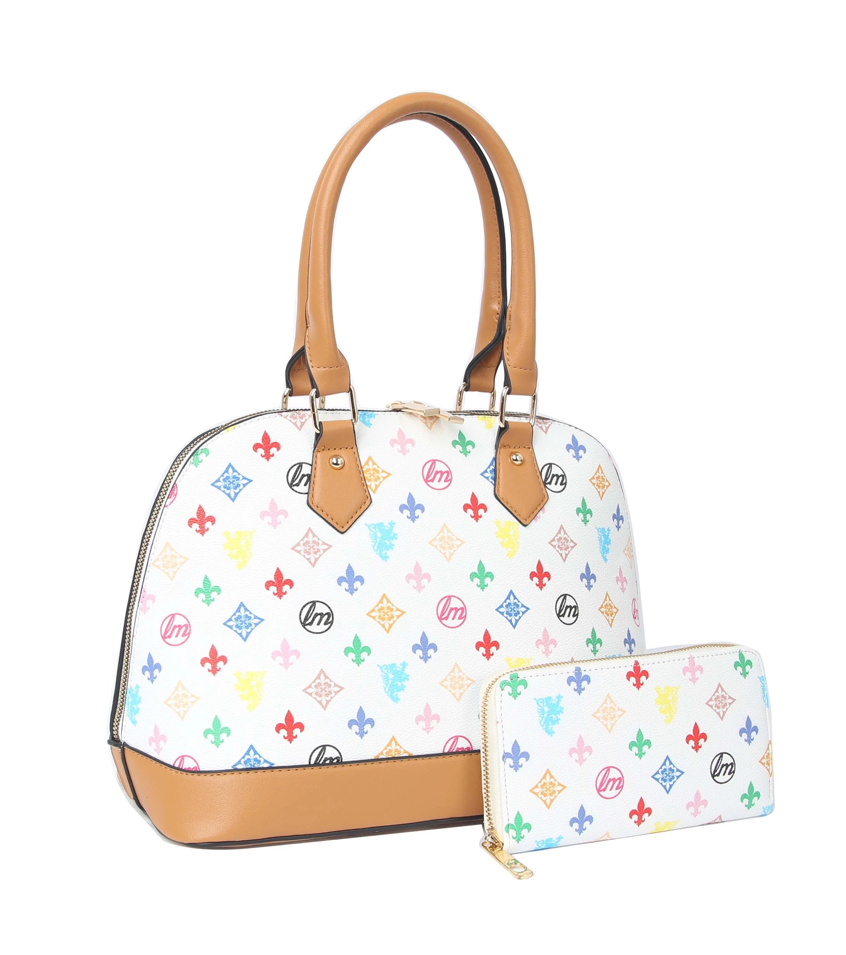 Wear this satchel as a crossbody or carry by the top handles. Features a chic signature print and matching wallet. You'll feel put together effortlessly.