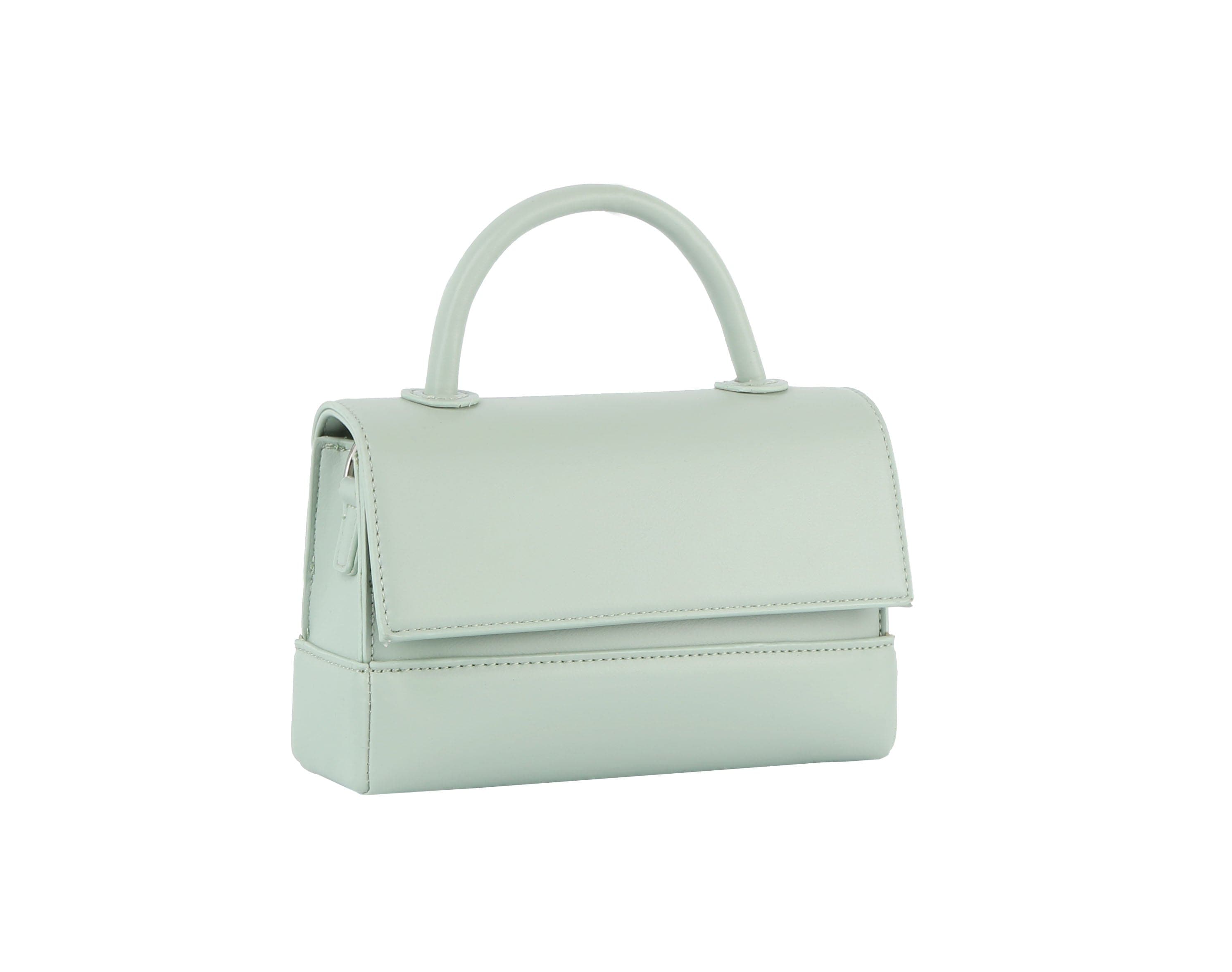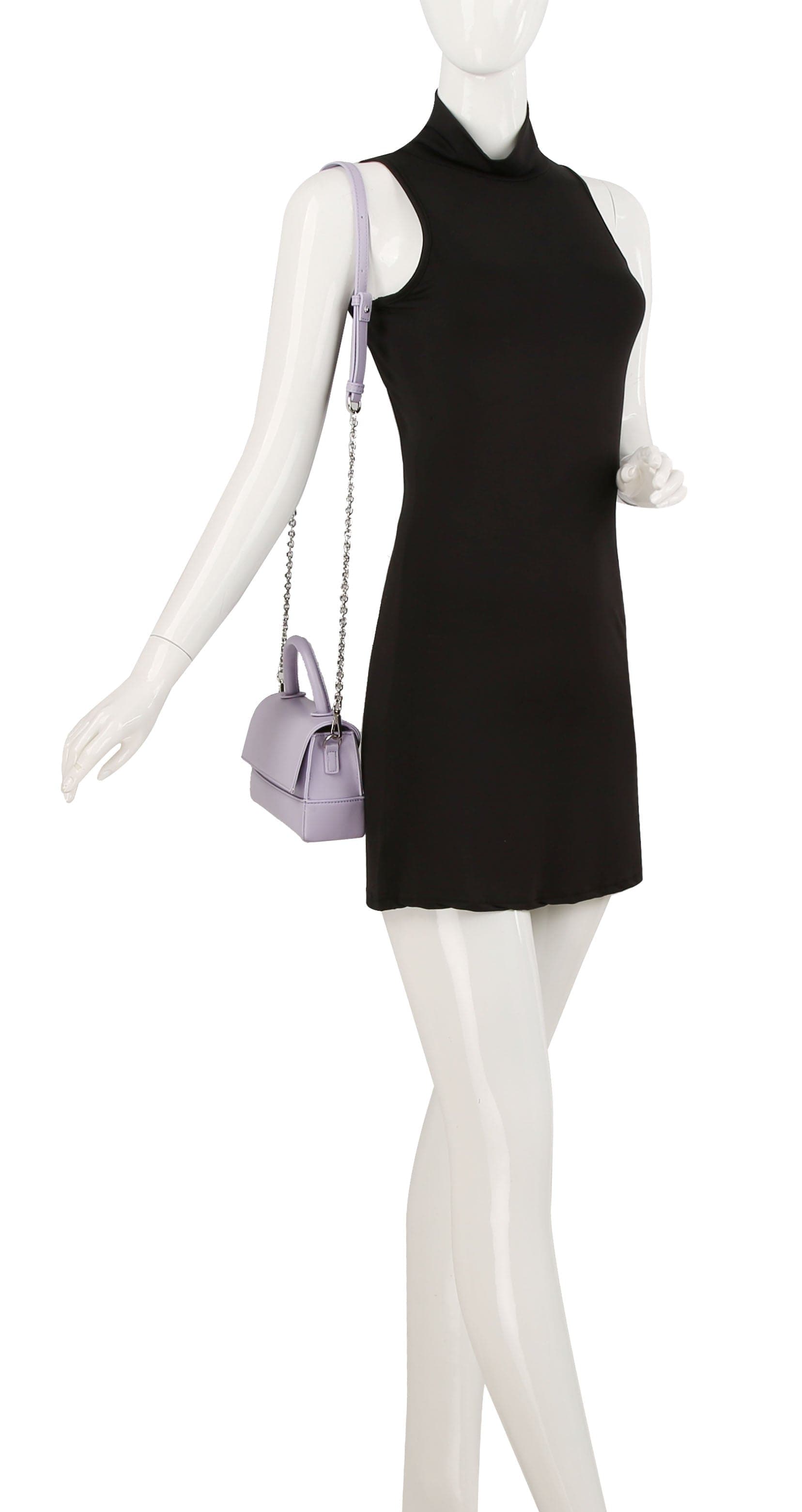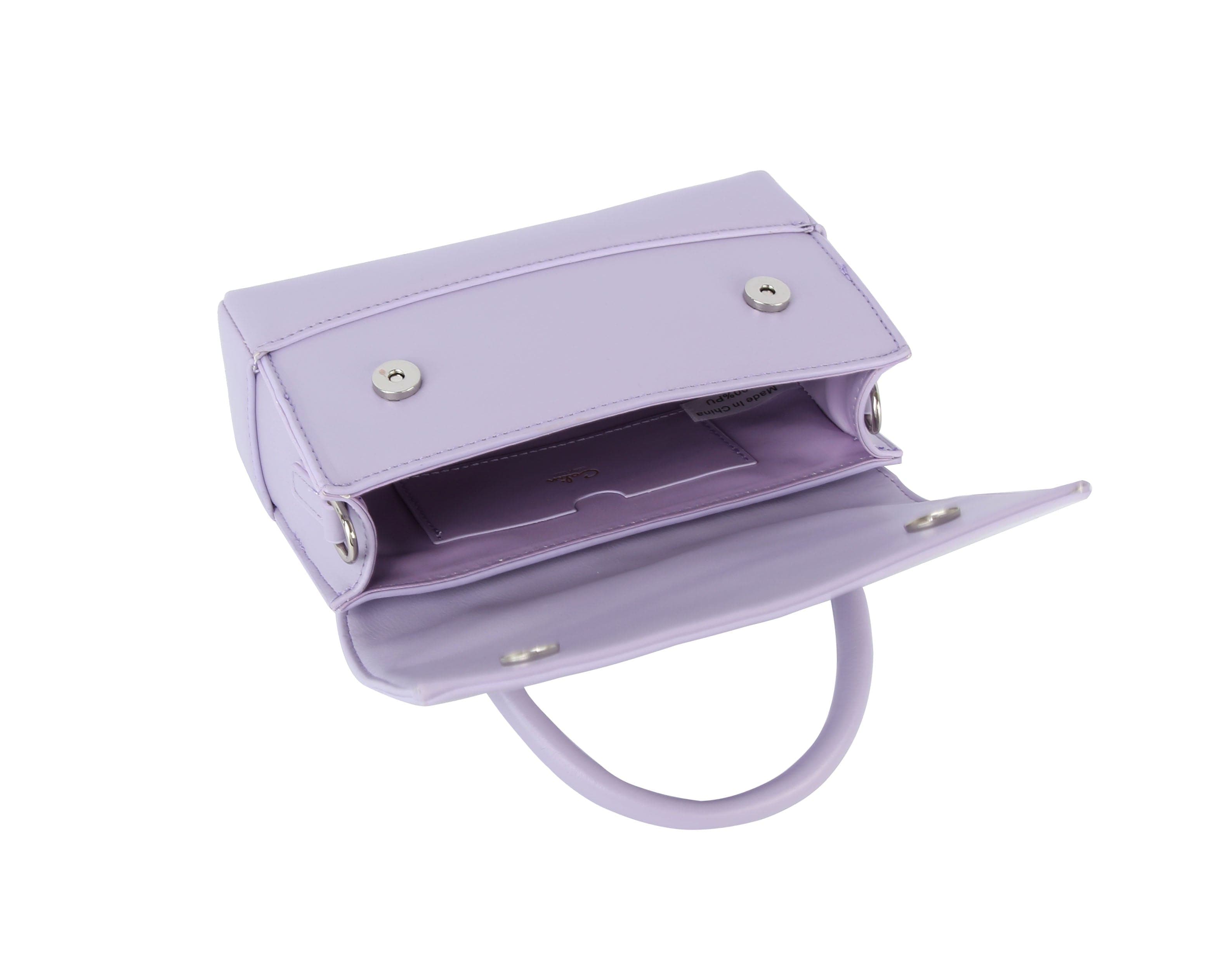 Single handle. 22L detachable strap. Faux leather with lined interior. Top snap closure. Silver toned hardware.   ...