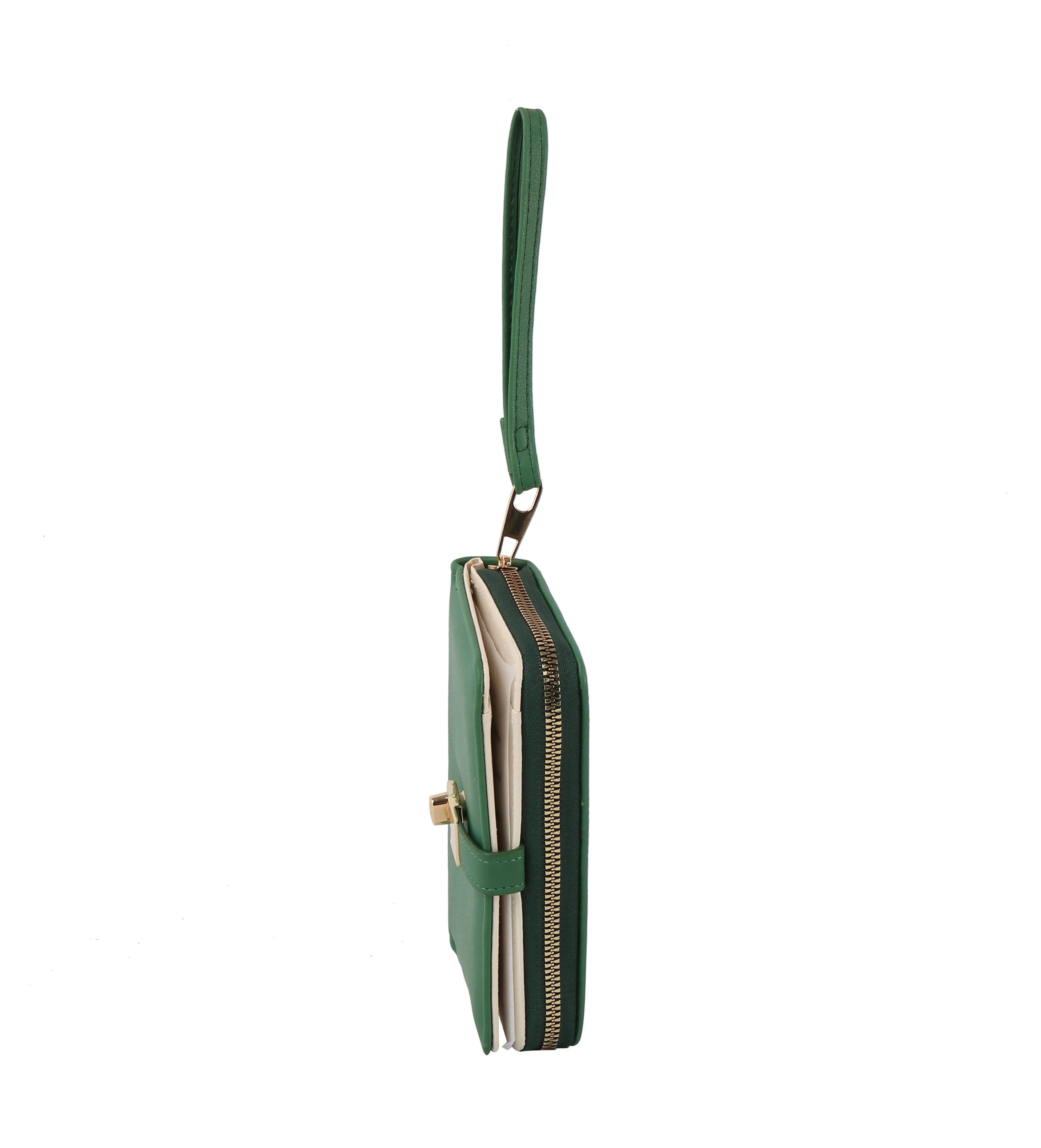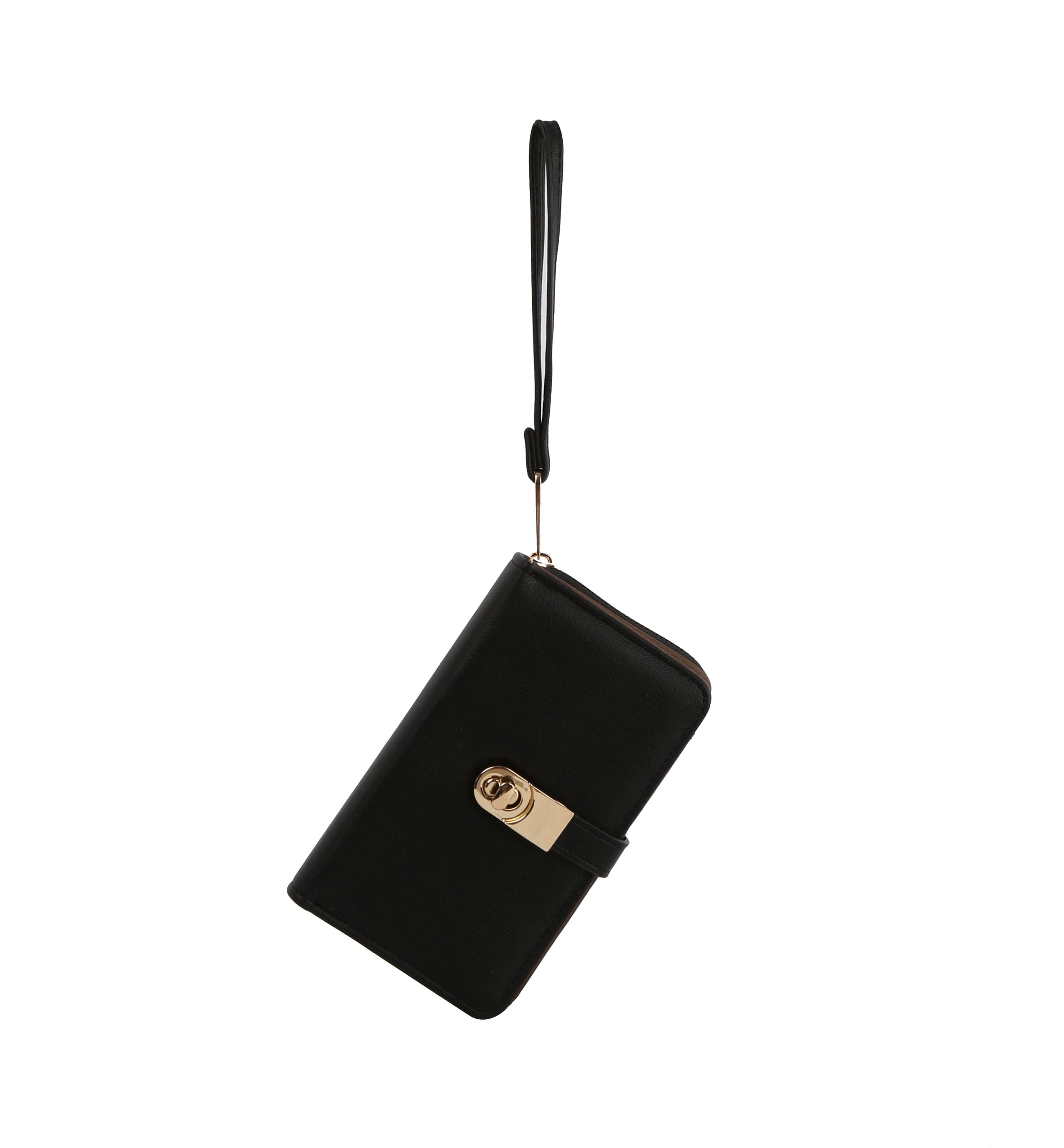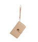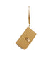 Wristlet wallet. Interior  divider pocket, multiple currency slots, card slots and clear id slot. Faux leather. Gold...