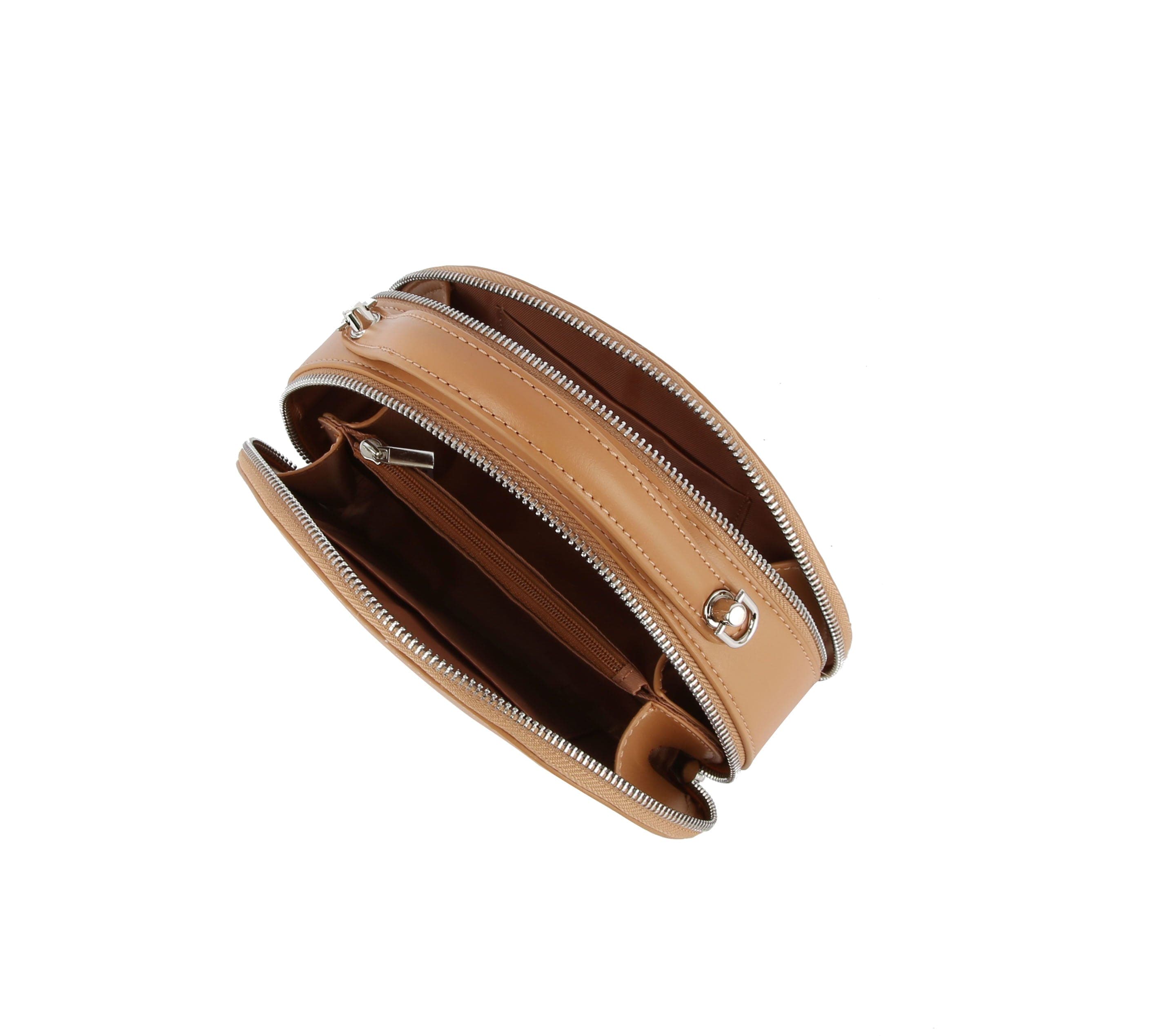 Carrying handle. 22L detachable strap. Faux leather with lined interior. 2 interior slip pockets and 1 zip...