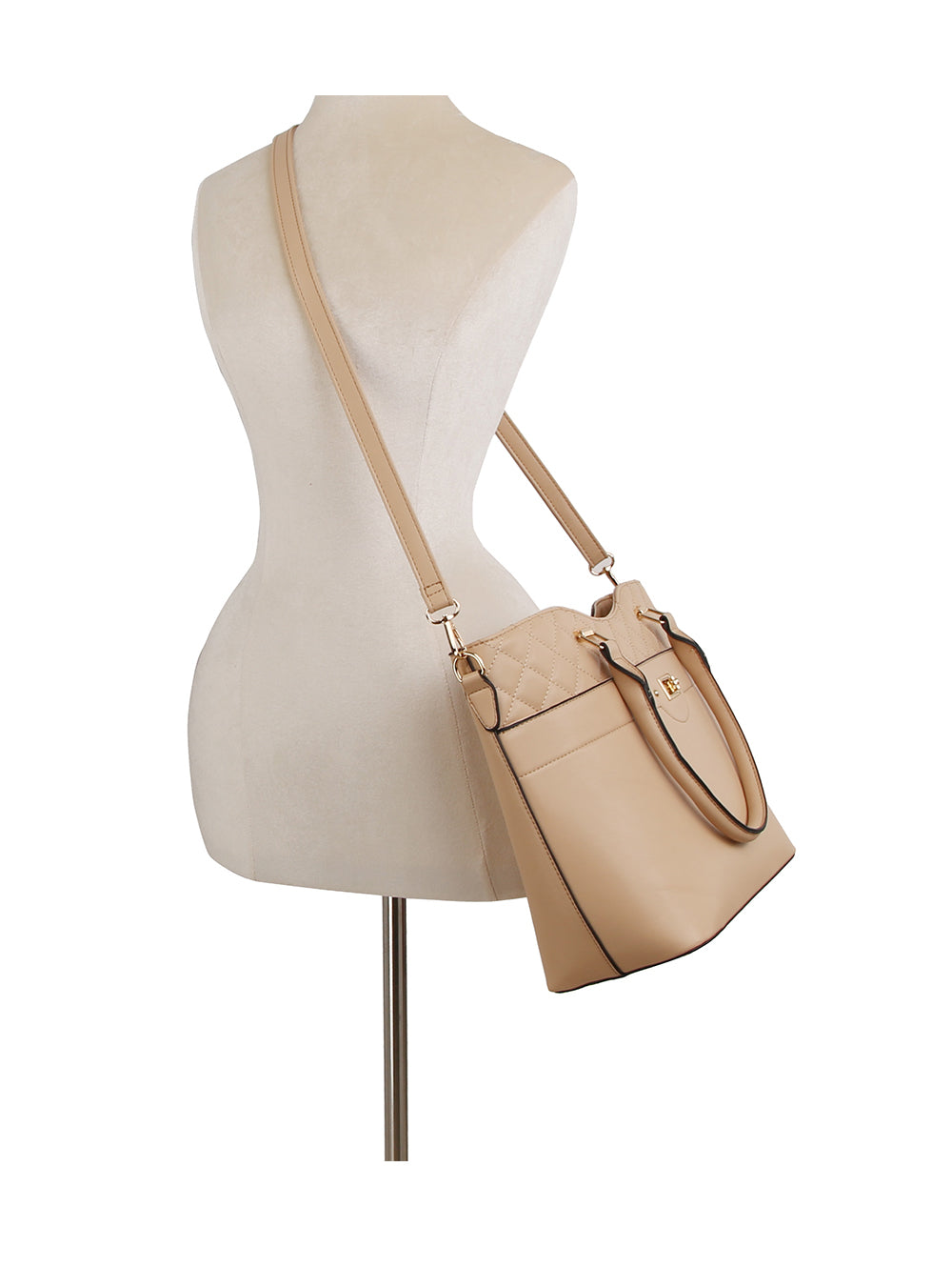 Silver toned hardware.