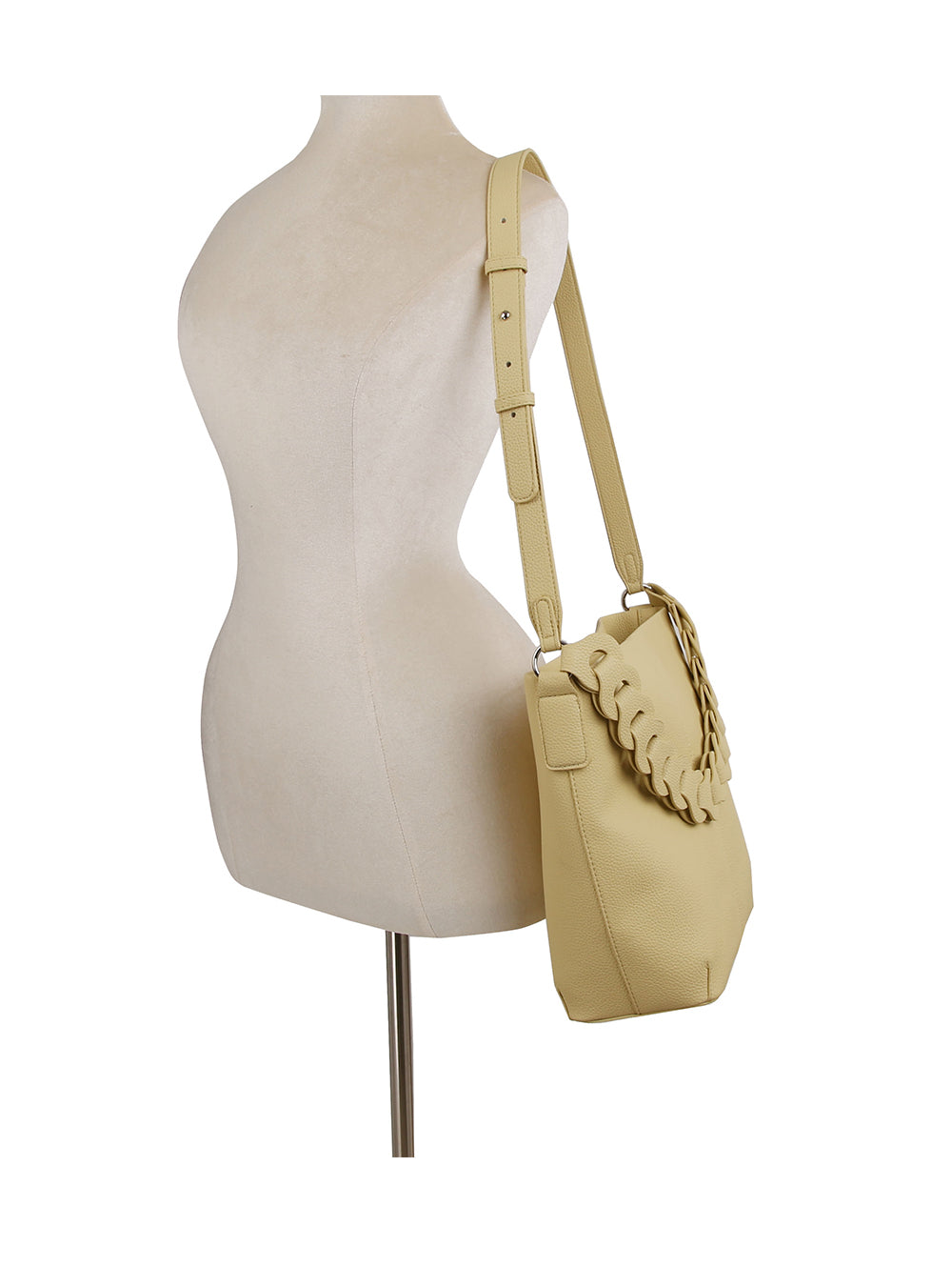9L adjustable single strap. Faux leather with lined interior. 2 interior slip pockets and 1 zip pocket....