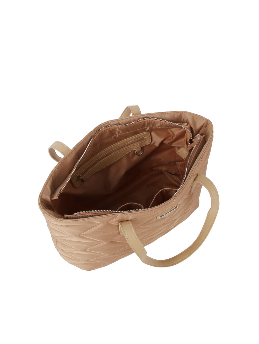 1 back zip pocket. 9.5L double handles.  Nylon construction with faux leather trim and lined interior. 2...
