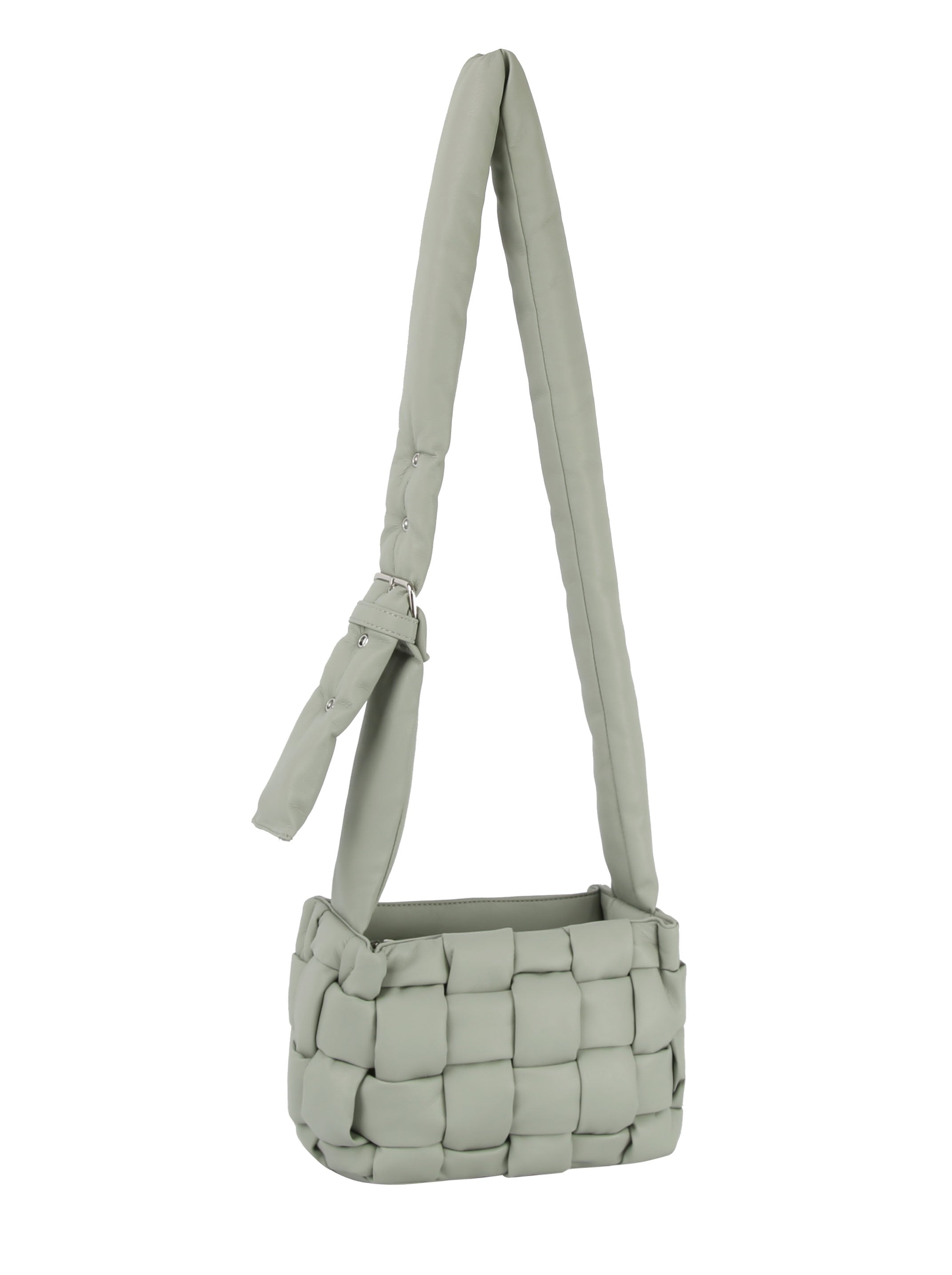 Silver toned hardware.