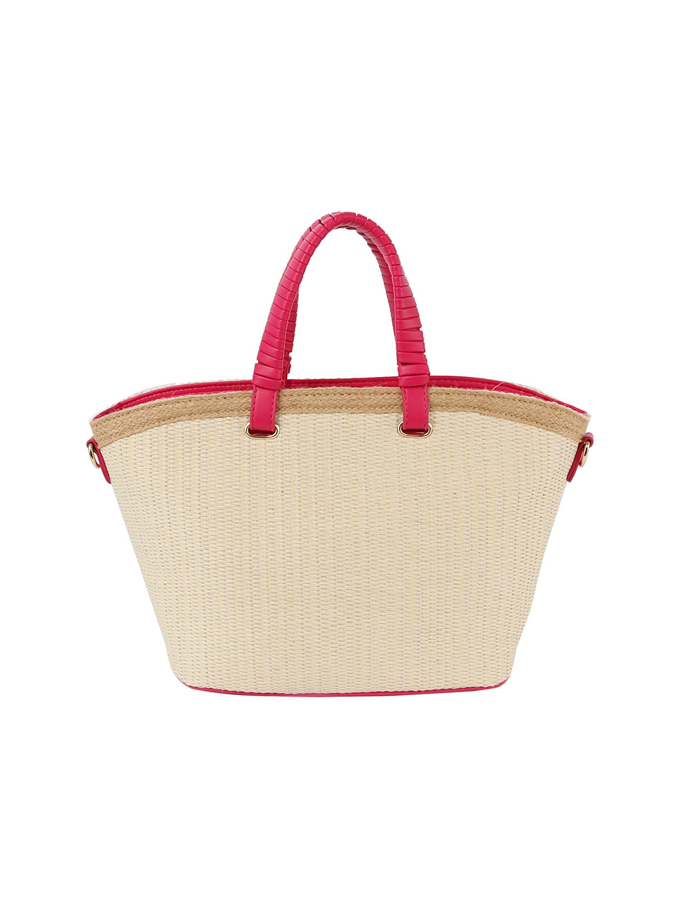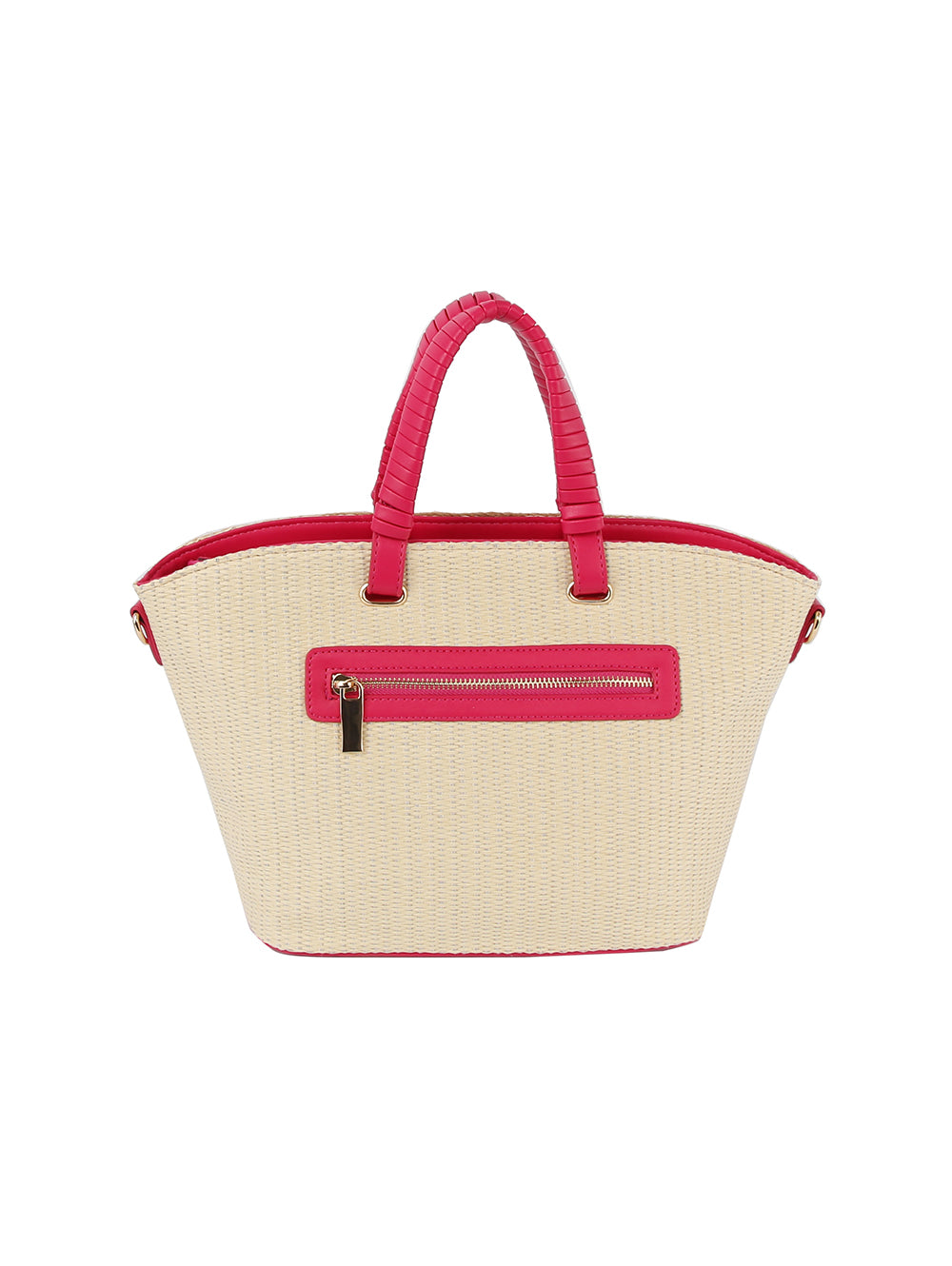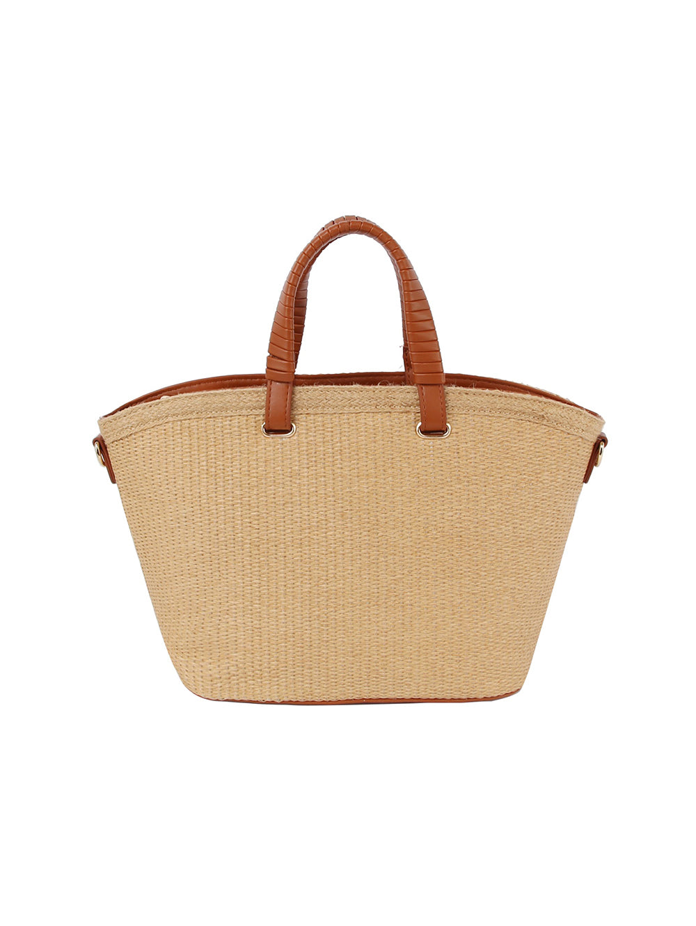 1 back zip pocket. 5L double handles. 22L detachable strap. Straw constructions with faux leather and lined...
