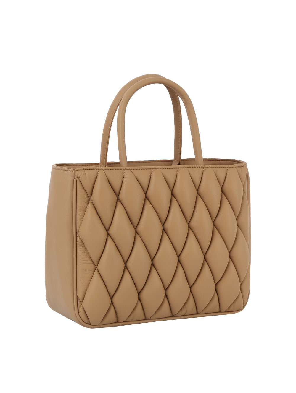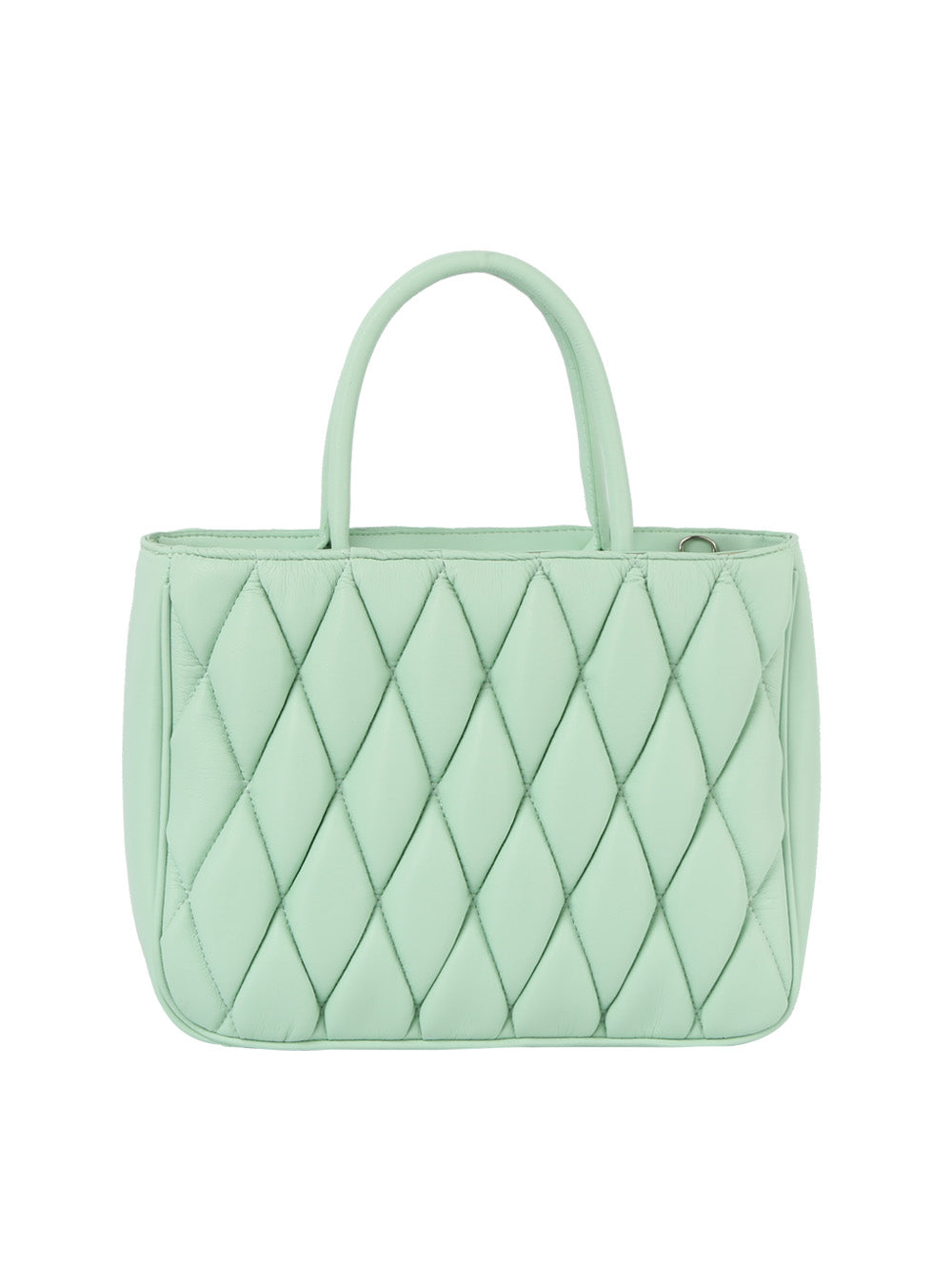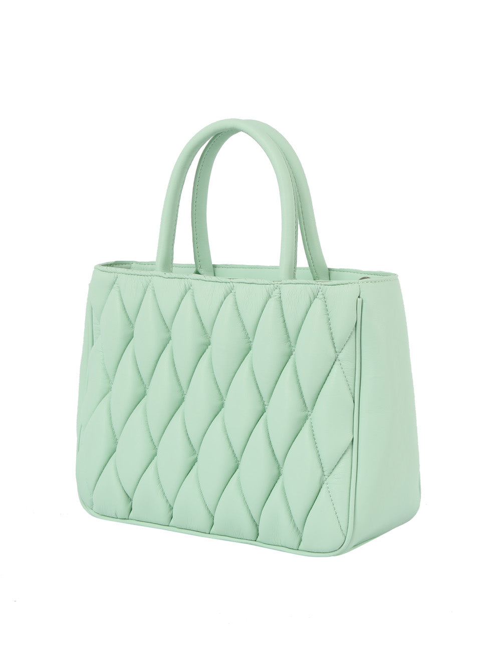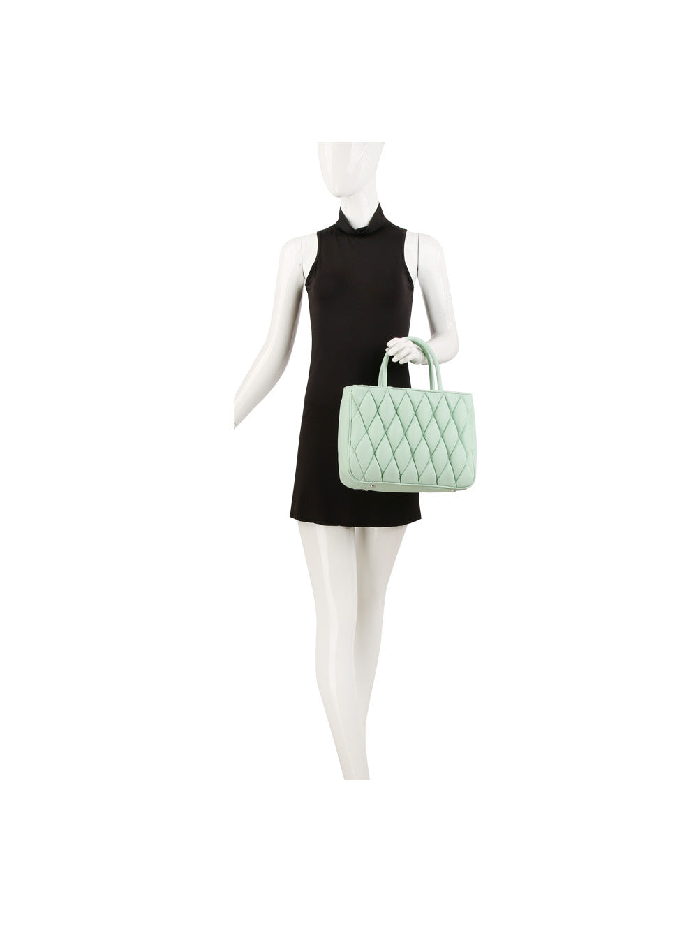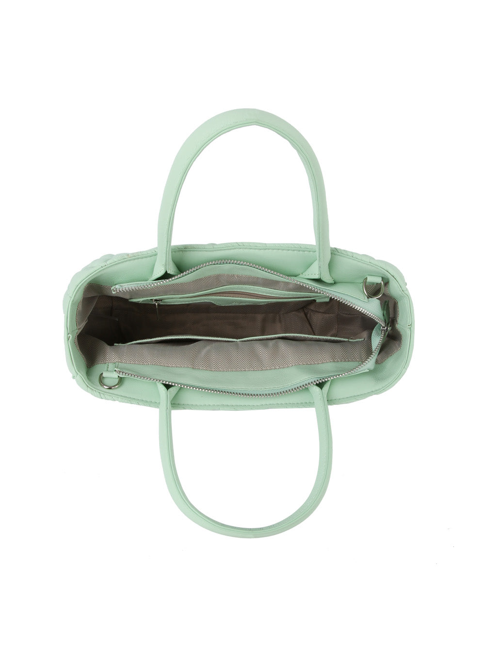 9.5L double handles.  Faux leather with lined interior. 2 interior slip pockets and 1 zip pocket. Top...