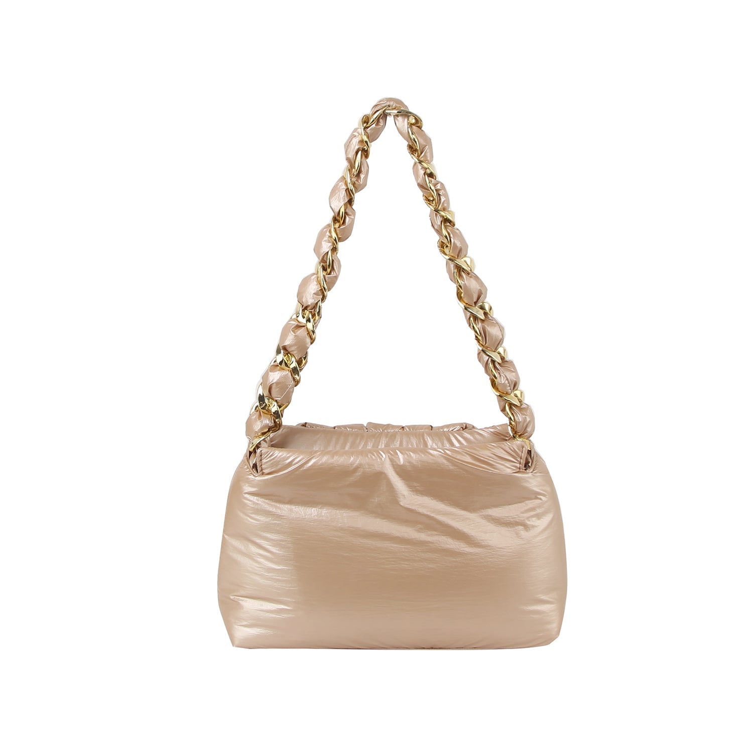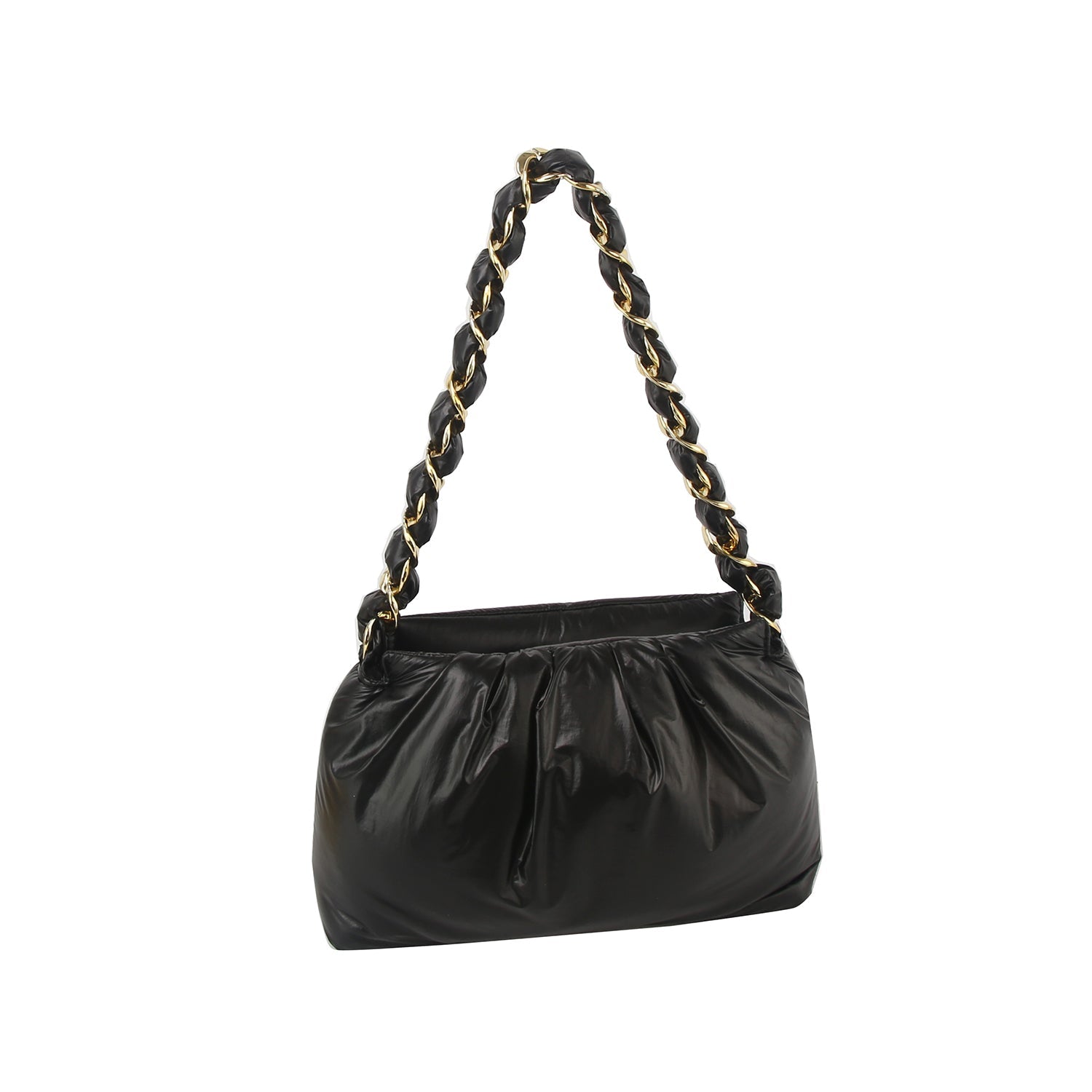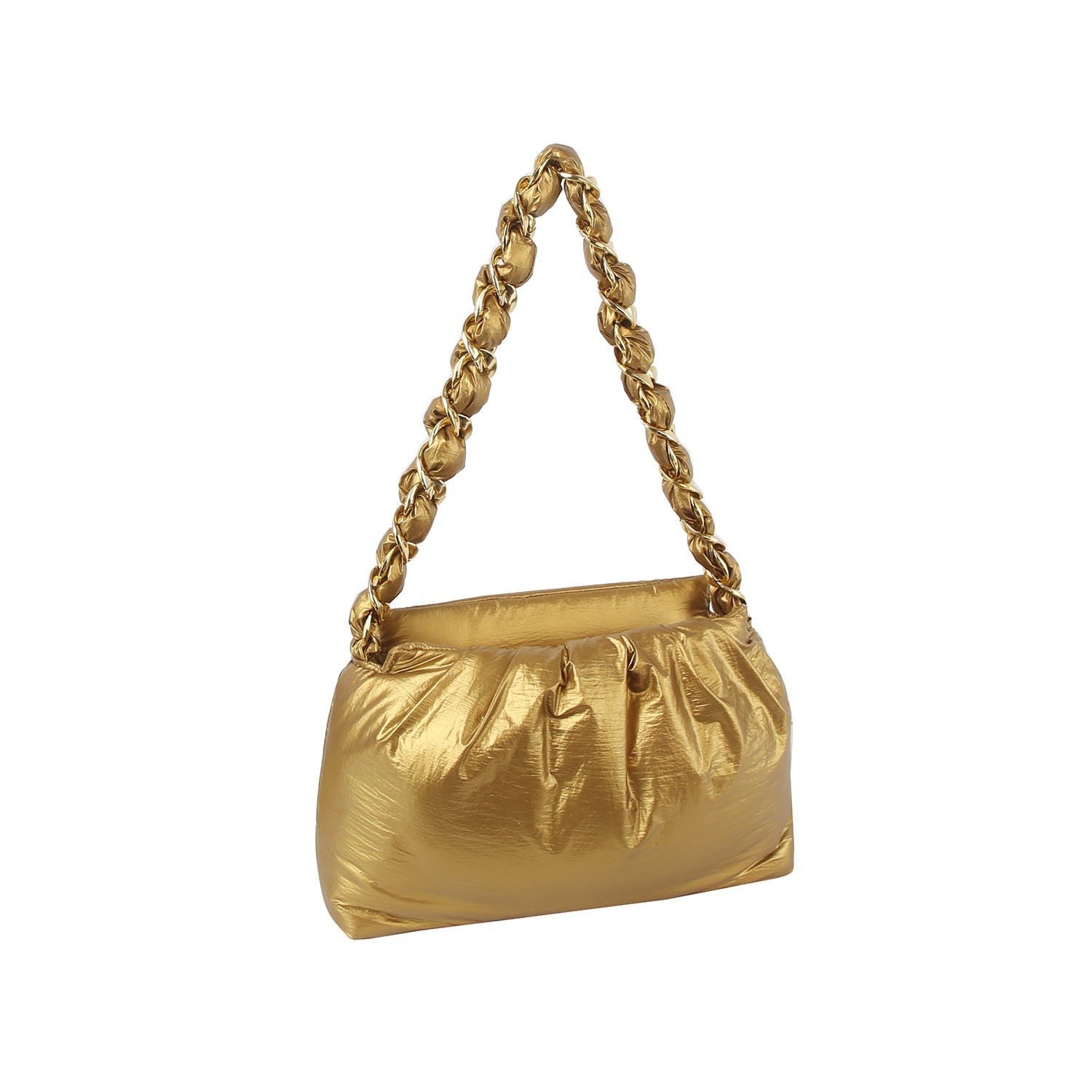 PVC Gold tone hardware Top zip closure Solid lining with inner pocket Chain point shoulder strap Size:...