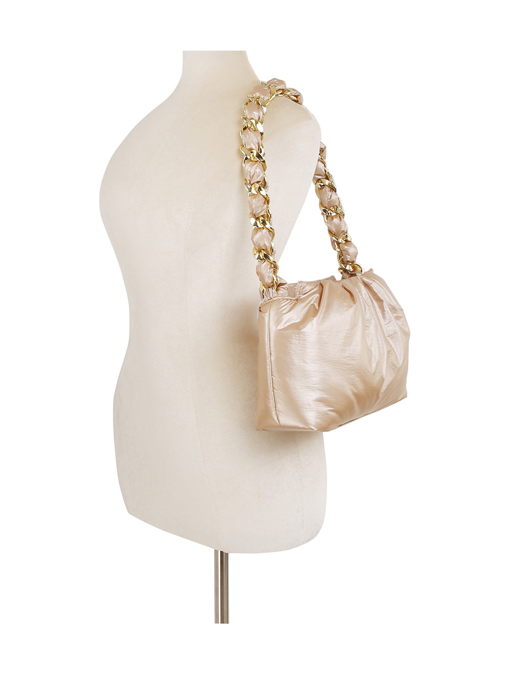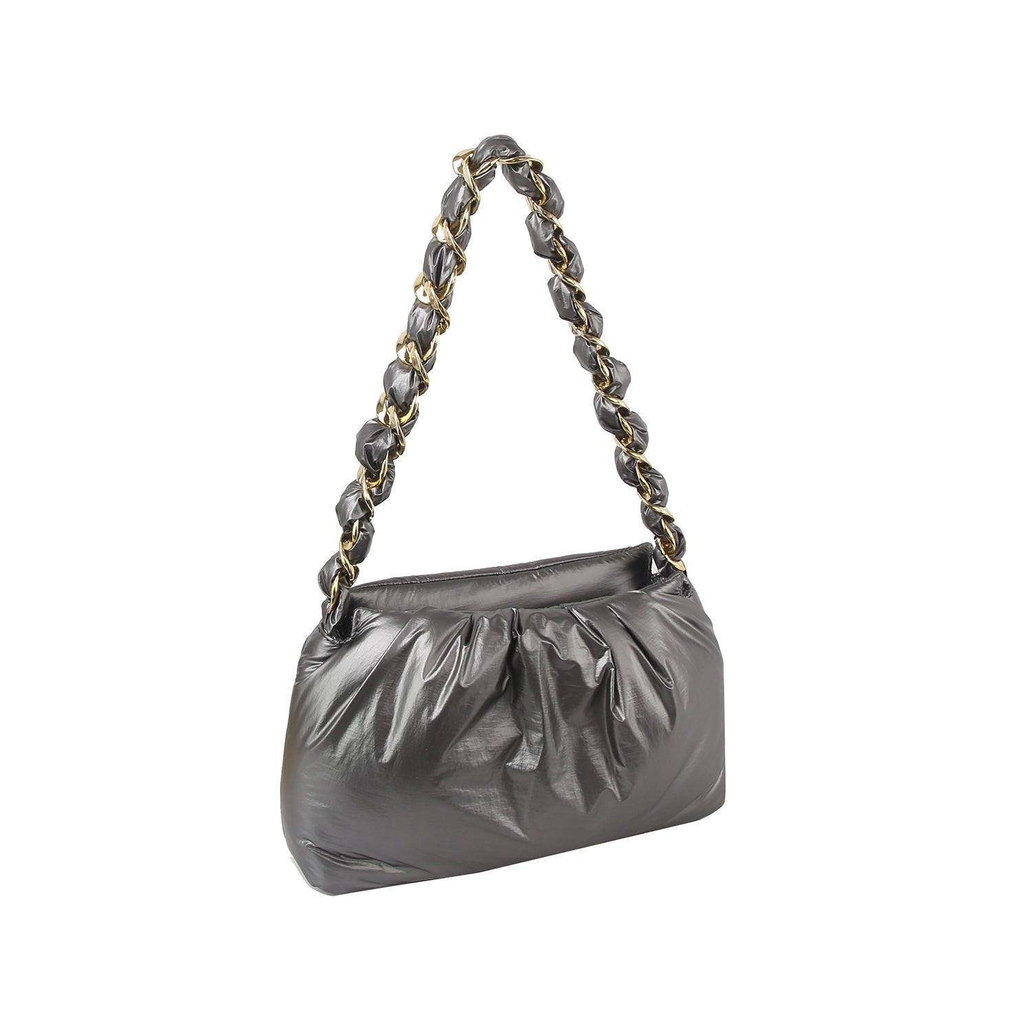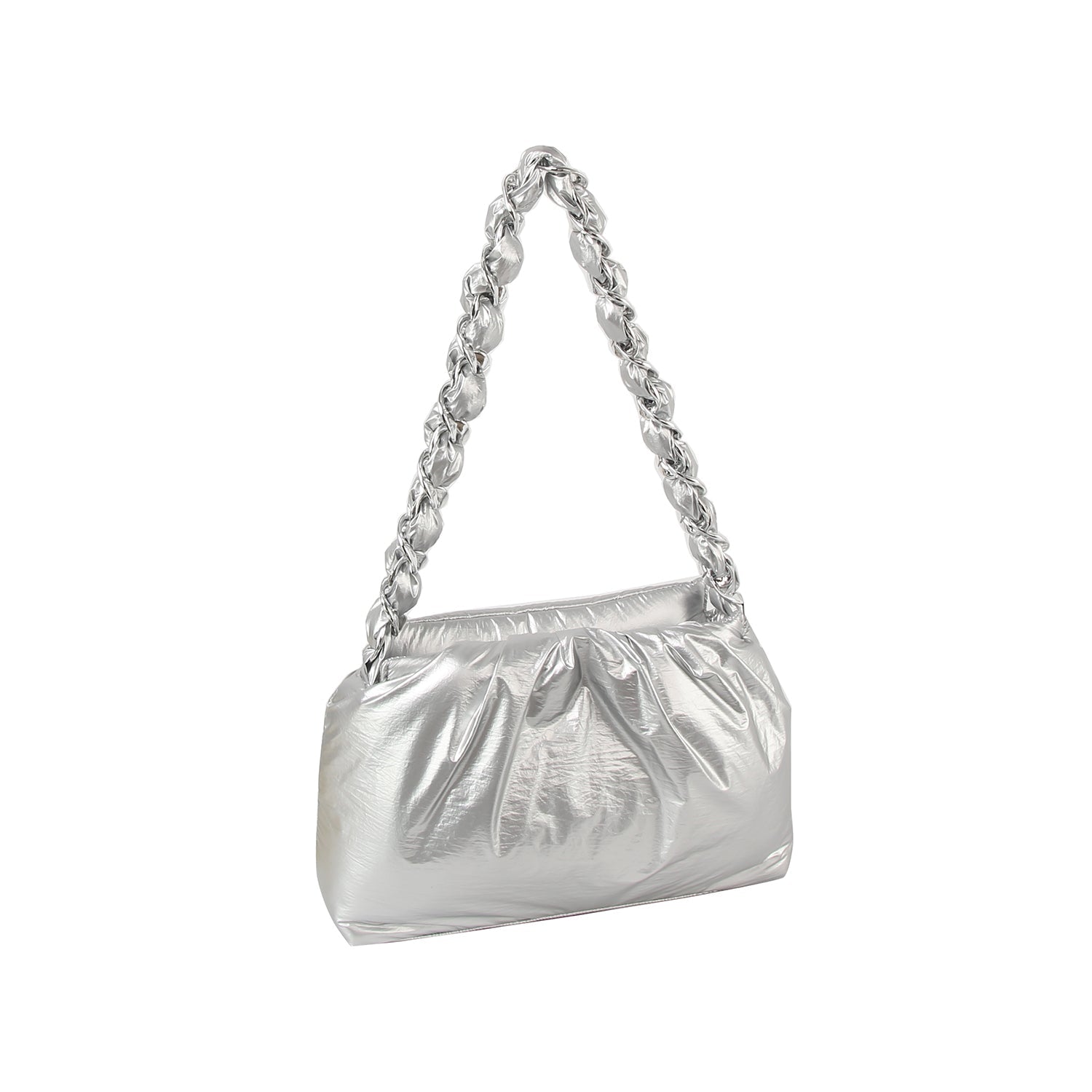 PVC Gold tone hardware Top zip closure Solid lining with inner pocket Chain point shoulder strap Size:...
