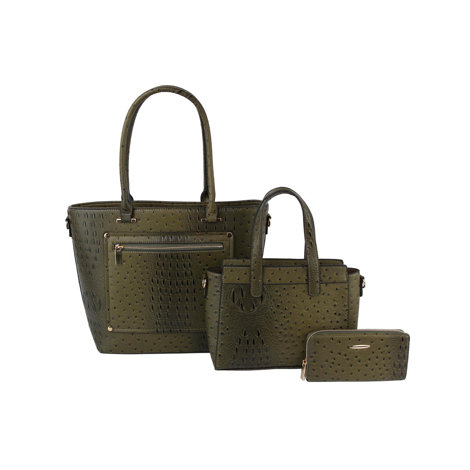 Includes 1 smaller, matching tote bag and matching zip around wallet.