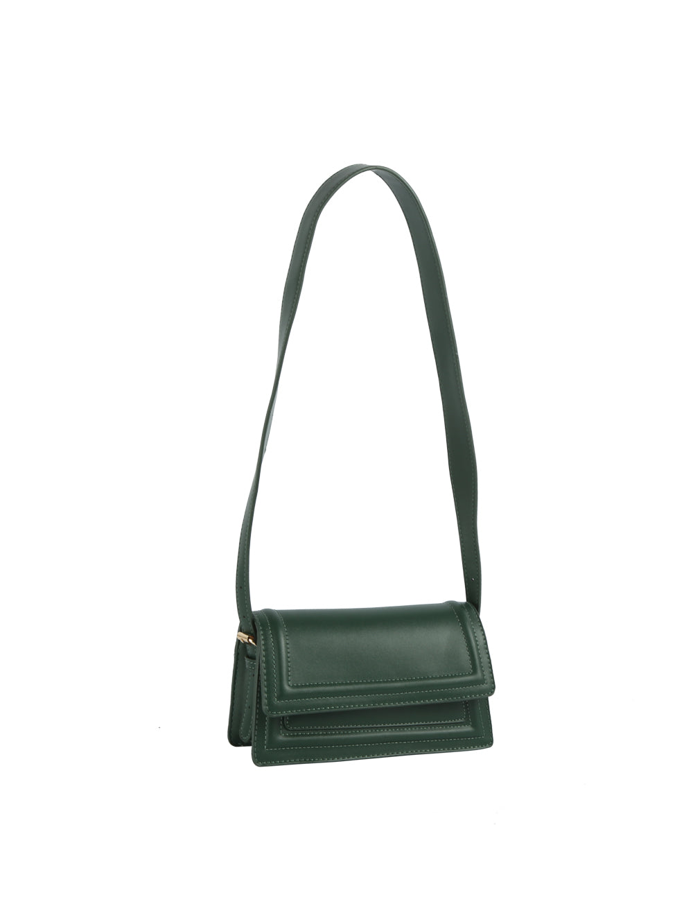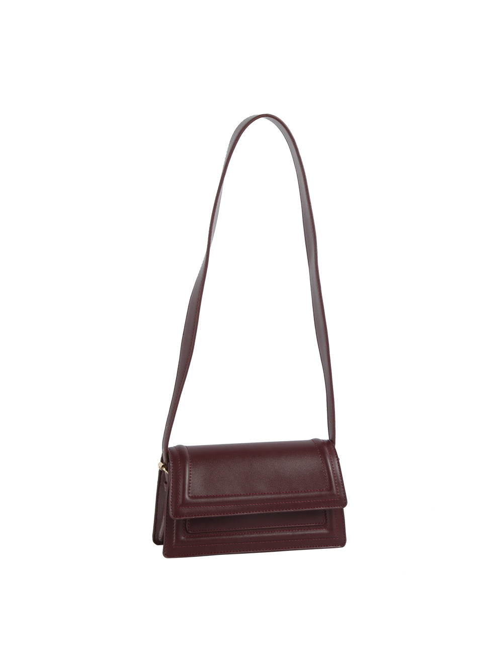 Sleek geometric flap design for a modern, structured silhouette Made with smooth vegan leather and tonal stitching...