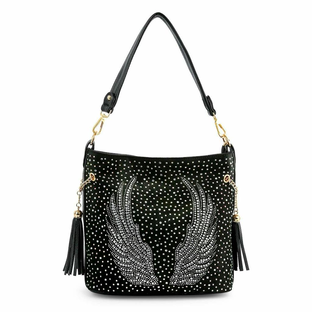 Wings Design Rhinestone Hobo Handbag