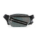 Brilliant rhinestones and a handy front pocket distinguish a convenient sling bag fitted with an adjustable guitar-styled strap...
