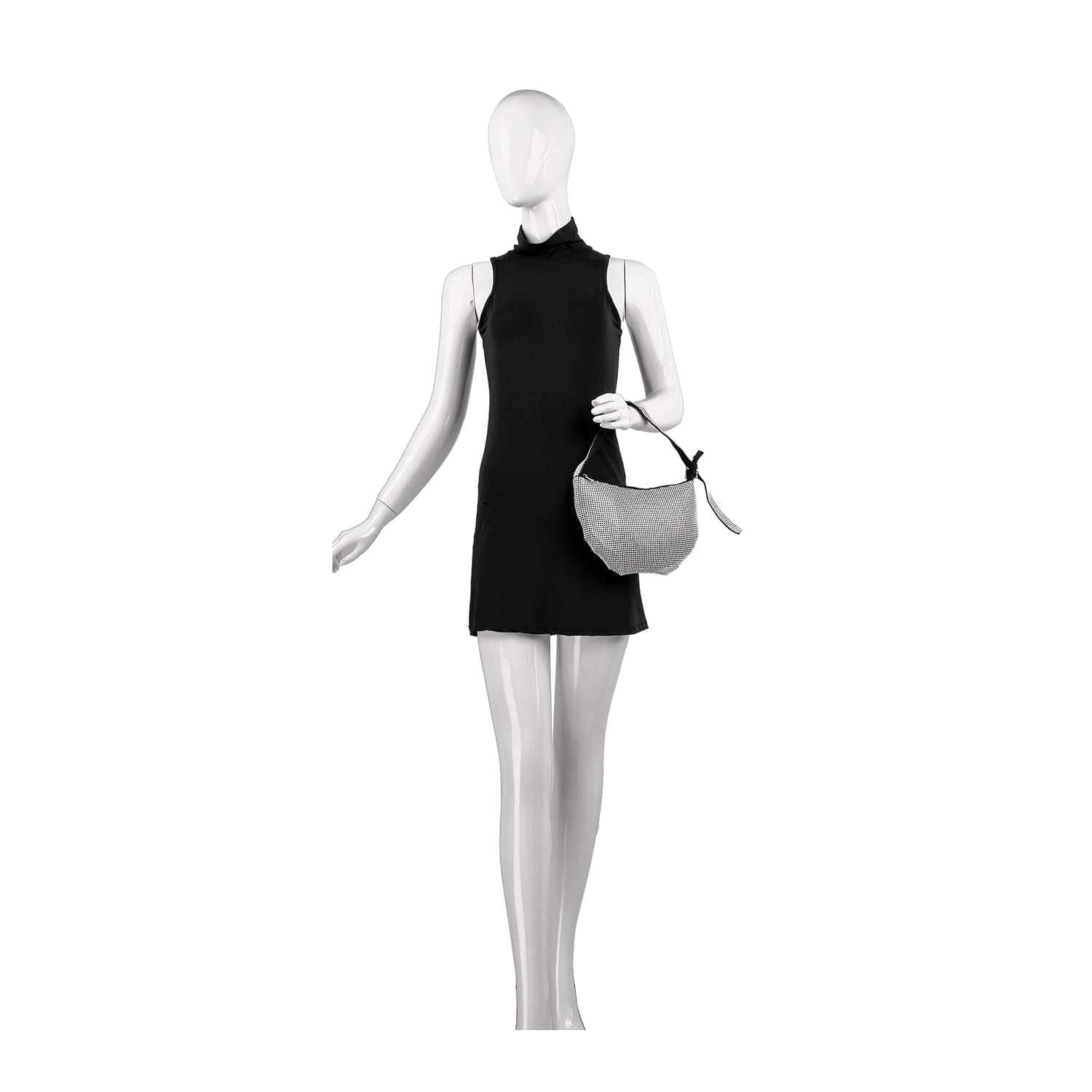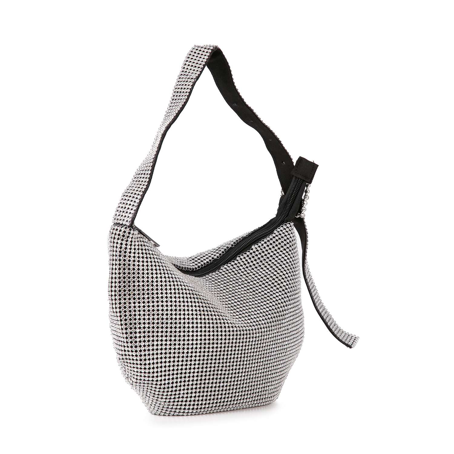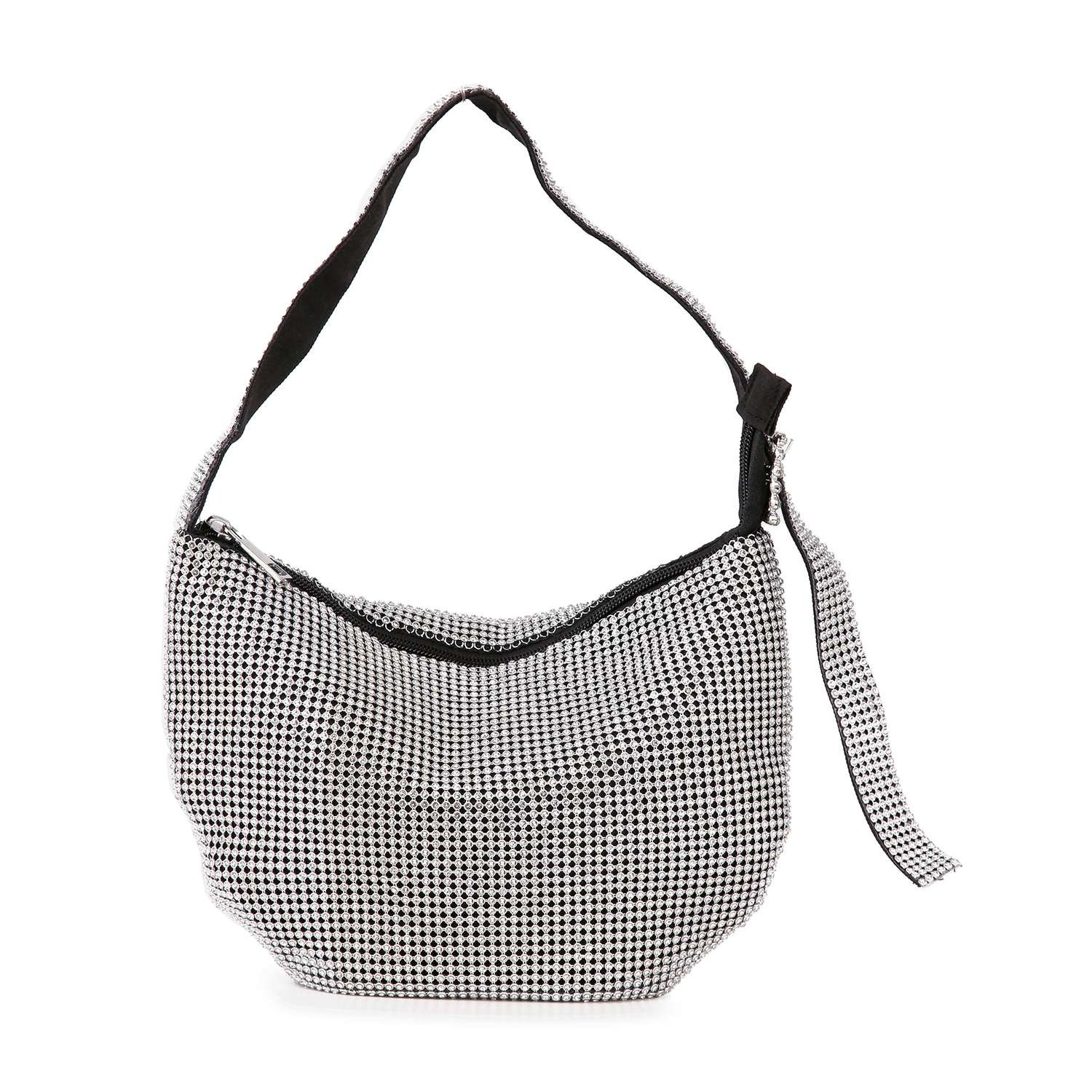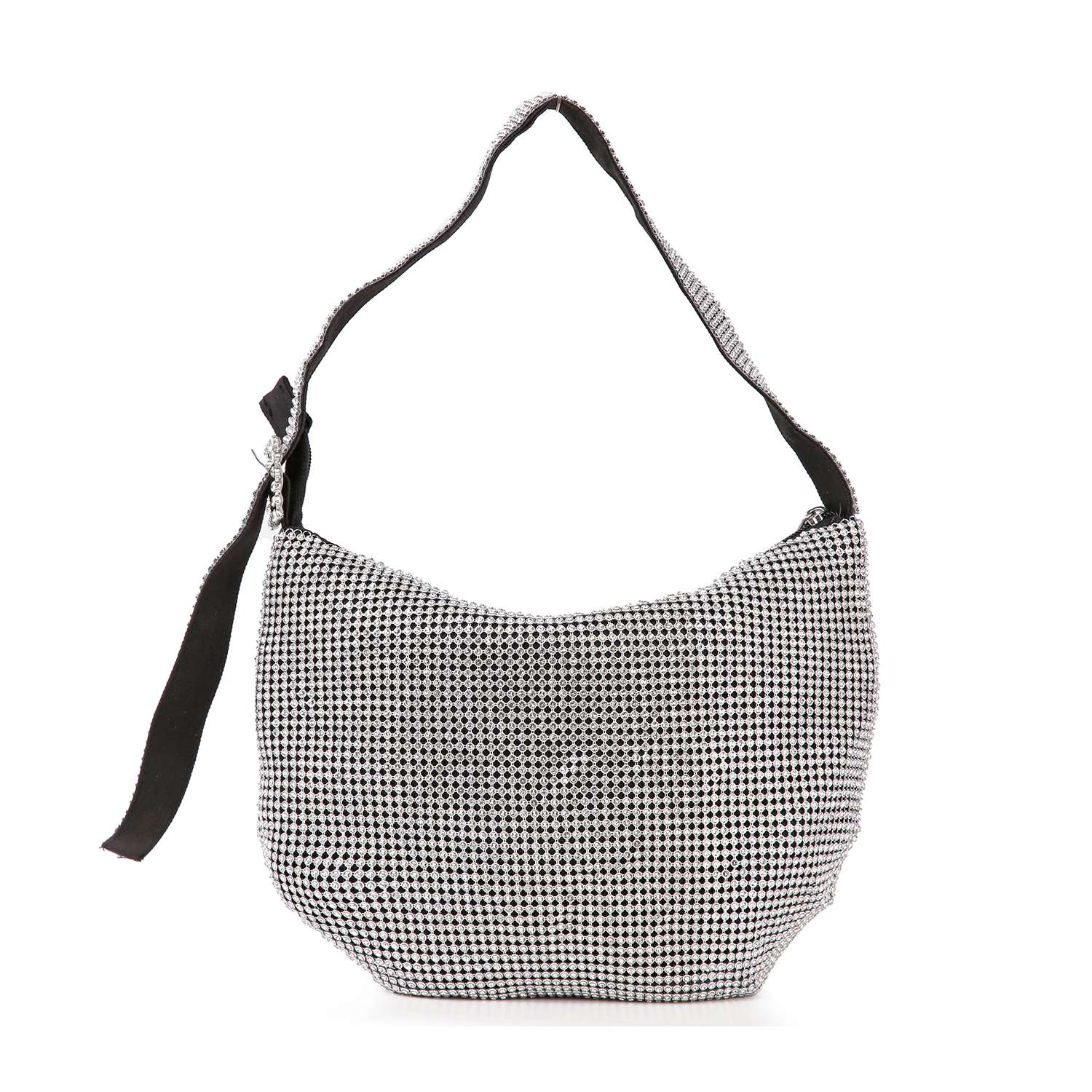 Make a shining statement of gorgeous style with this dazzling rhinestone metal mesh hobo.