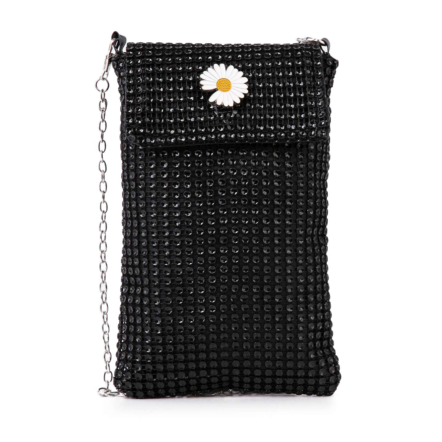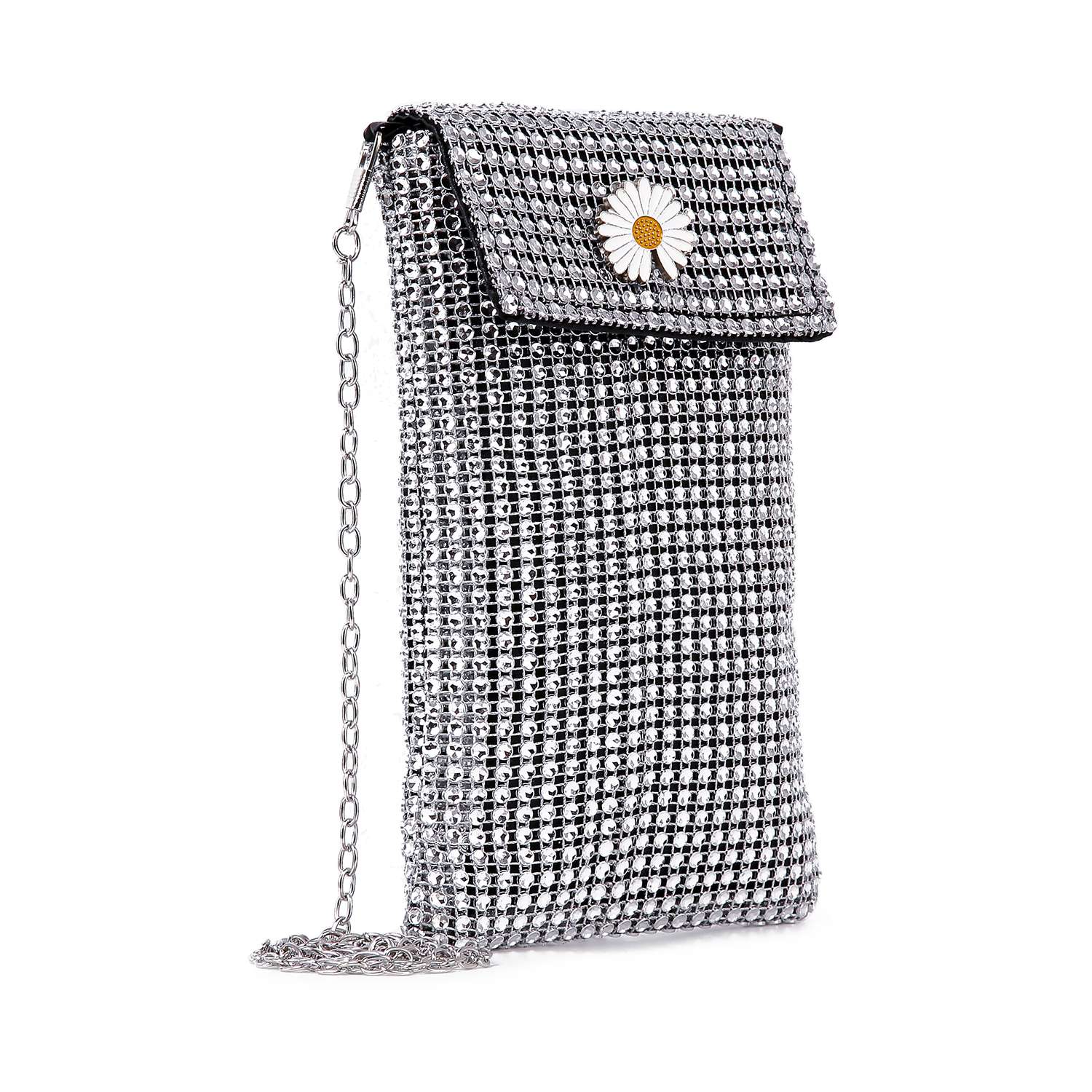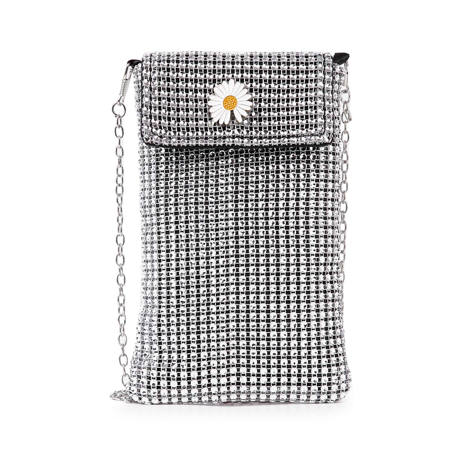 Metal Mesh Rhinestone Daisy Cell Phone Crossbody