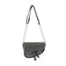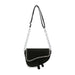 A stylized chain accented handle long enough to go over the shoulder ensures a comfortable carry in this perfectly sized hobo furnished with plenty of sparkle.
