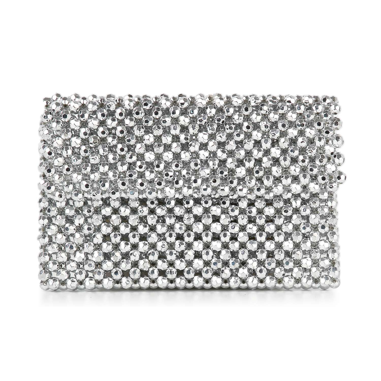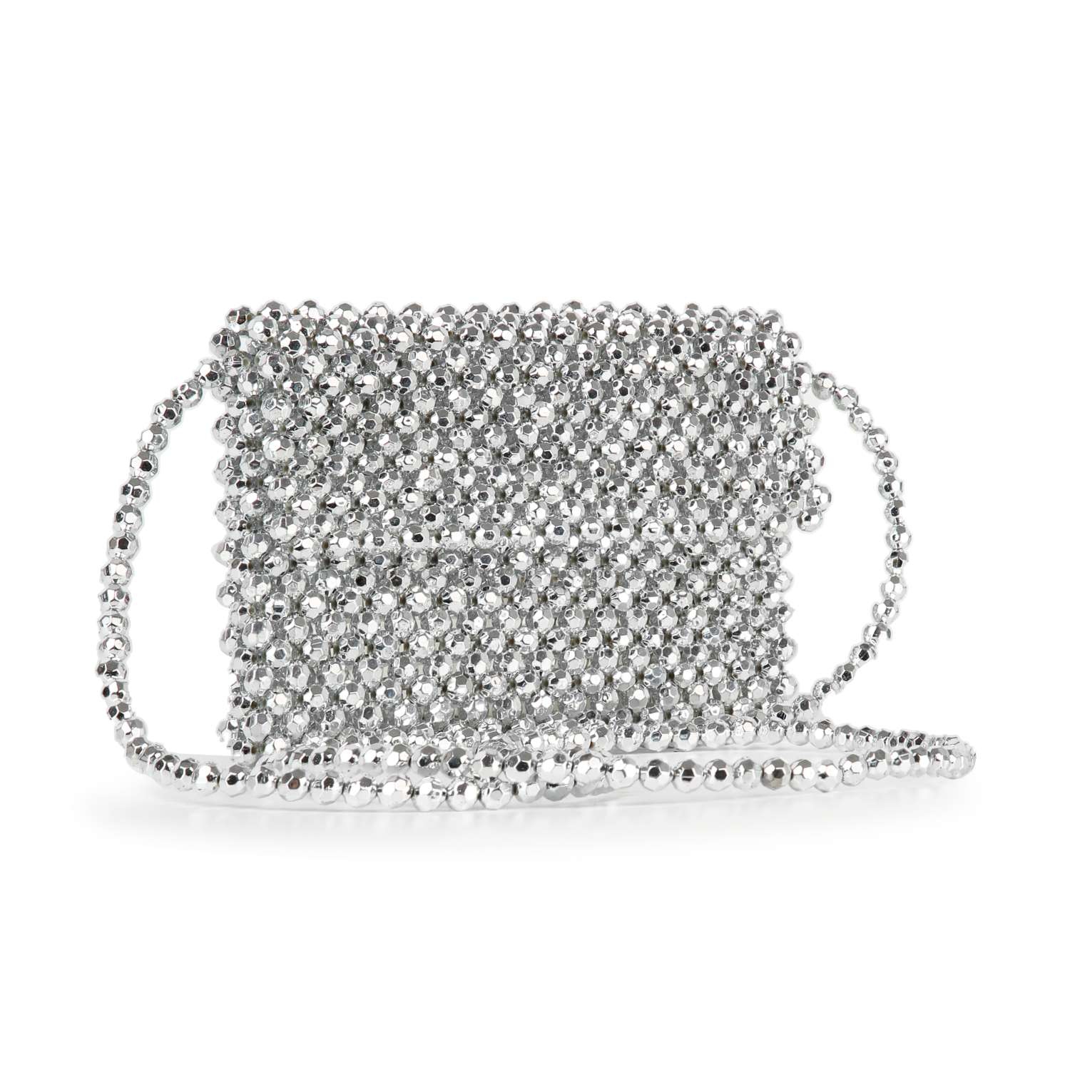 Sparkling beads embellish an eye-catching, glamorous clutch style bag suspended from a beaded shoulder strap.