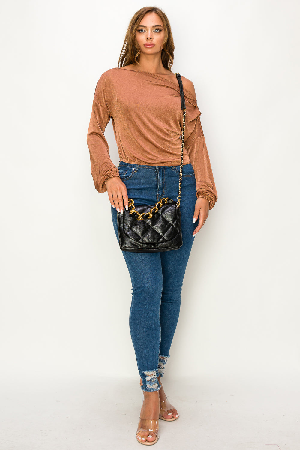 Effortlessly cool silhouette, this fashion hobo is made in a soft, quilted faux-leather and features a stunning chain accented strap.