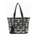 A classic shopper style tote in faux leather with a dazzling array of  stunning bling Skulls  set...