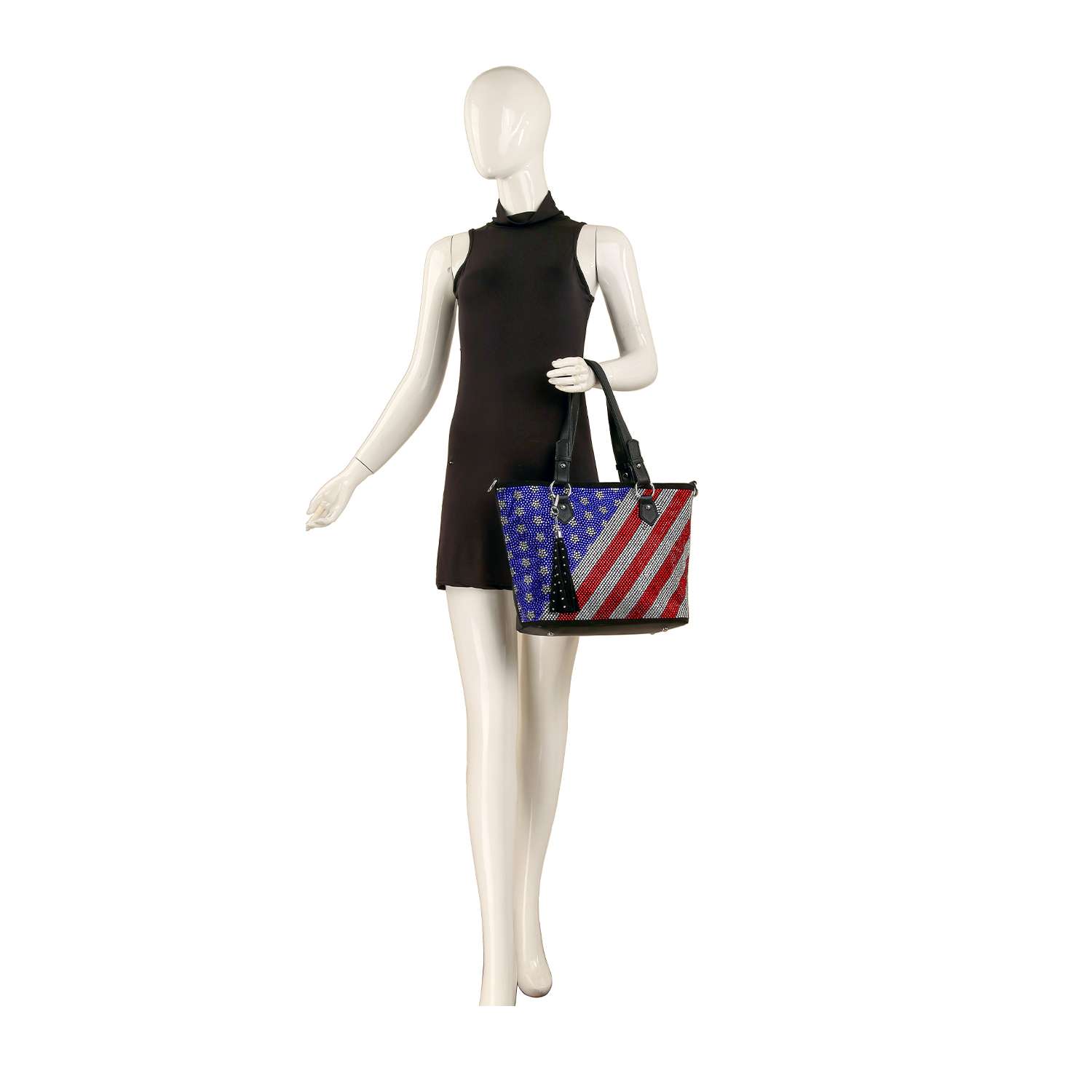 Modern Flag Rhinestone Design Shopper Tote