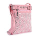 Turn some heads! A sparkling diamond-shaped pattern covers the front panel of this crossbody sling.