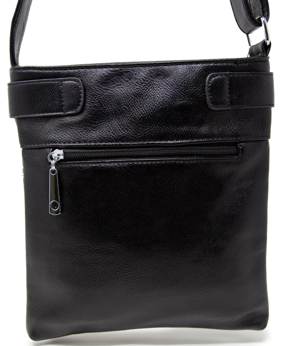 This classic crossbody sling in faux leather features a signature rhinestone Bee. You can't get more on-trend...