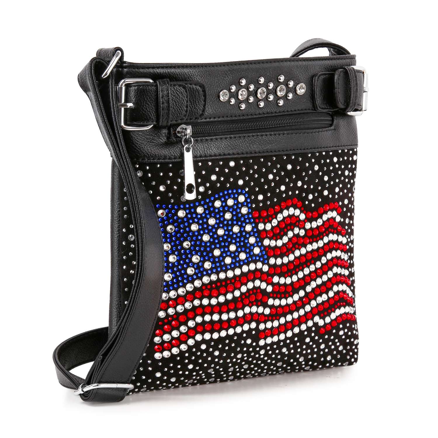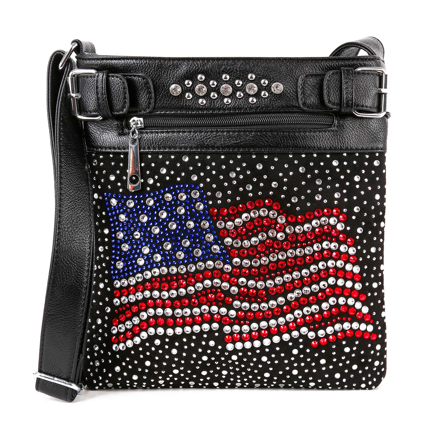 Rhinestone Bling Flag Crossbody Sling