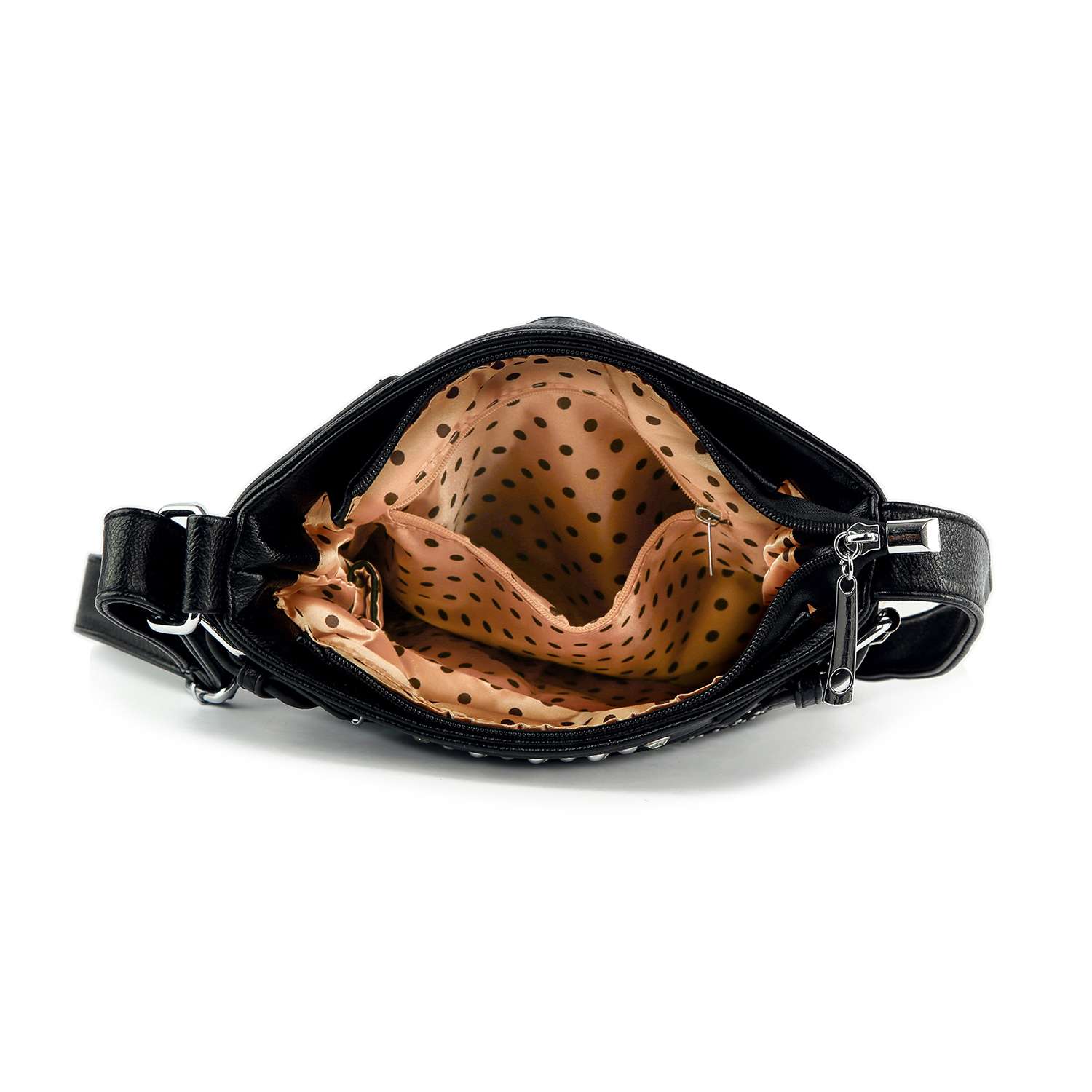 2 interior slip pockets & 1 zip pocket.