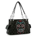 A rhinestone sugar skull gives instant wow-factor to a stunning shoulder bag.