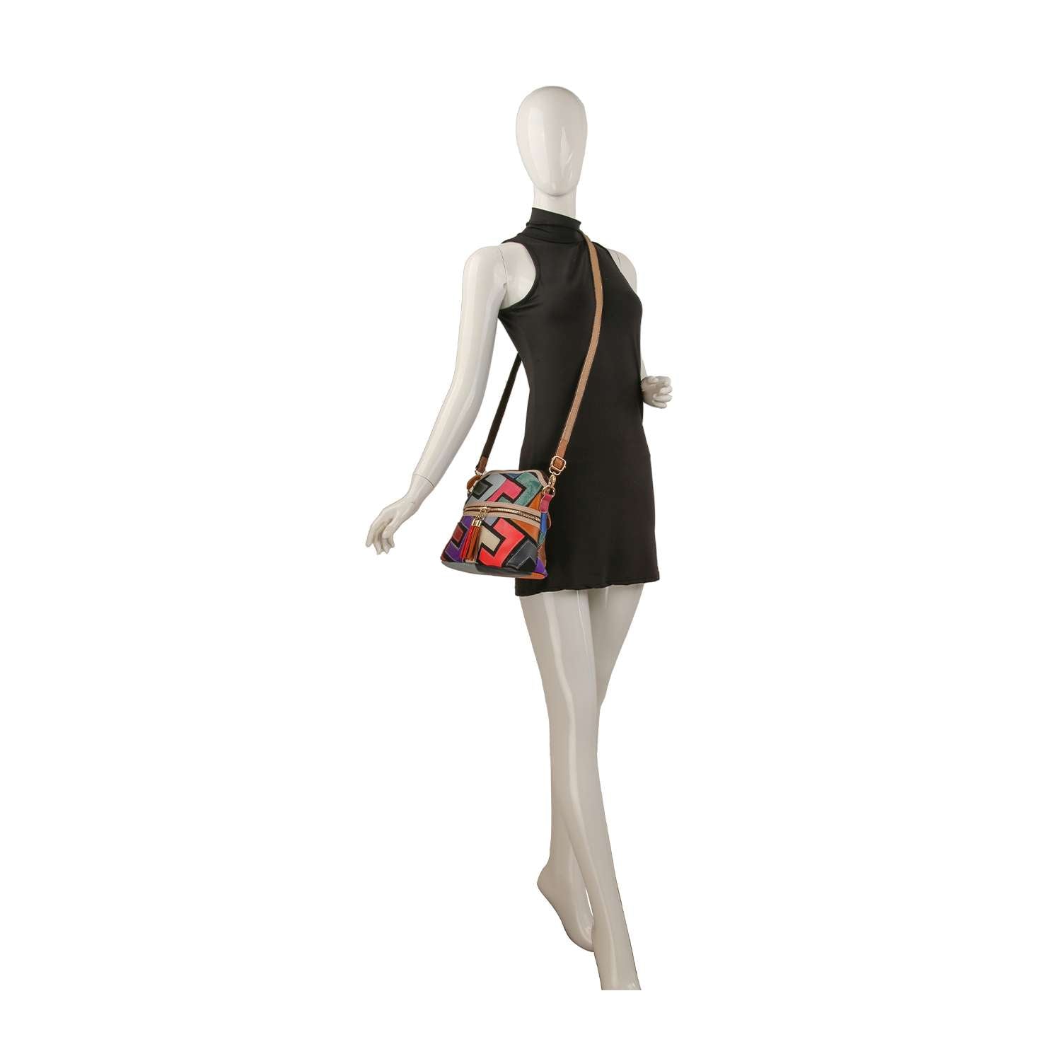 Genuine Leather Colorful Abstract Design Crossbody Sling