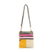 Front zip pockets accent a color block design on this perfectly sized, Genuine Leather crossbody sling!