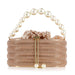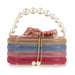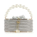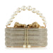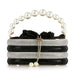 Elevate your eveningwear with a lavish petite evening tote crowned by a pearl handle and striped with glittering sparklers—an optional chain strap finishes the look with signature polish.