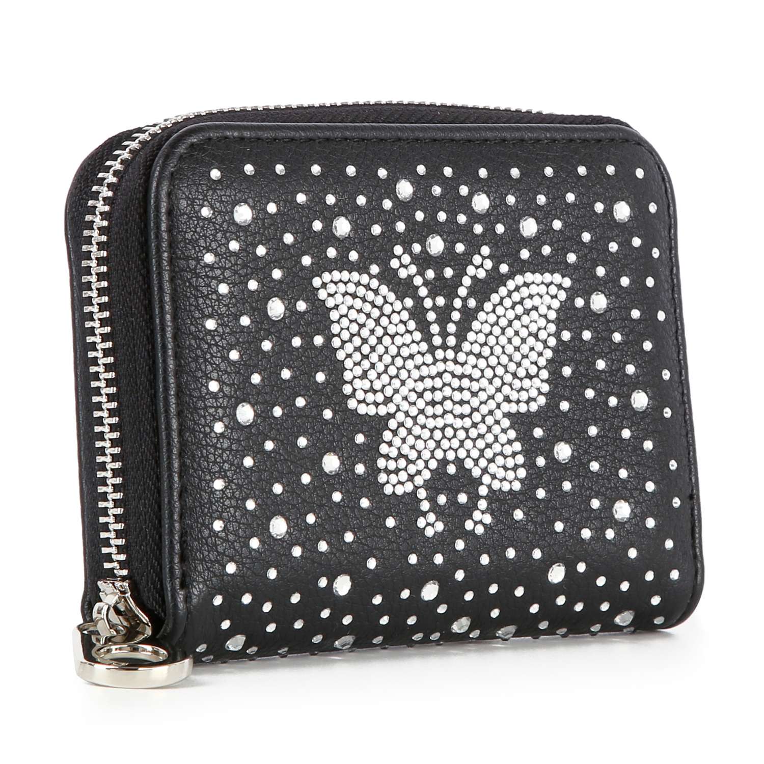 Accordion wallet with zip-around closure.
