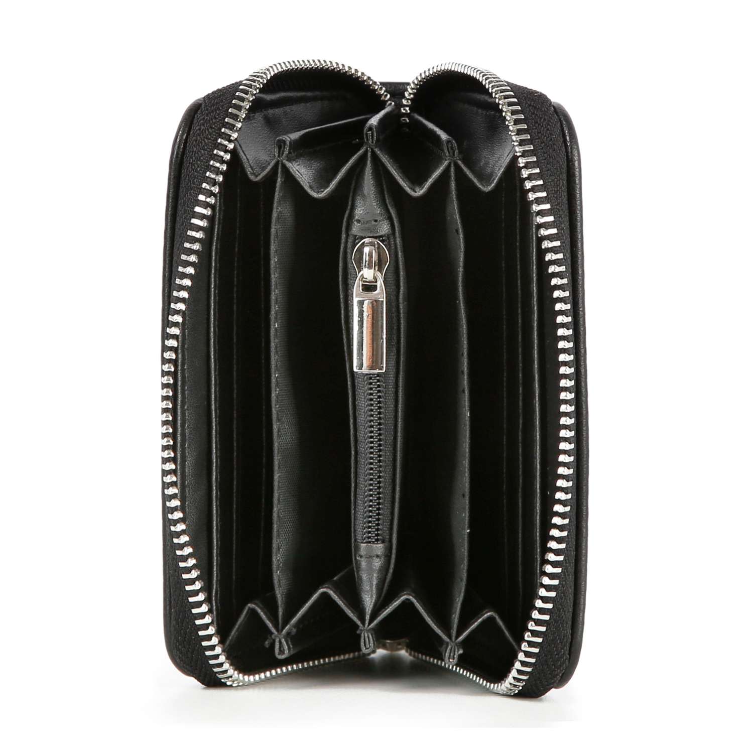 Accordion wallet with zip-around closure. Interior zip divider pocket, multiple currency slots and card slots. Faux leather...