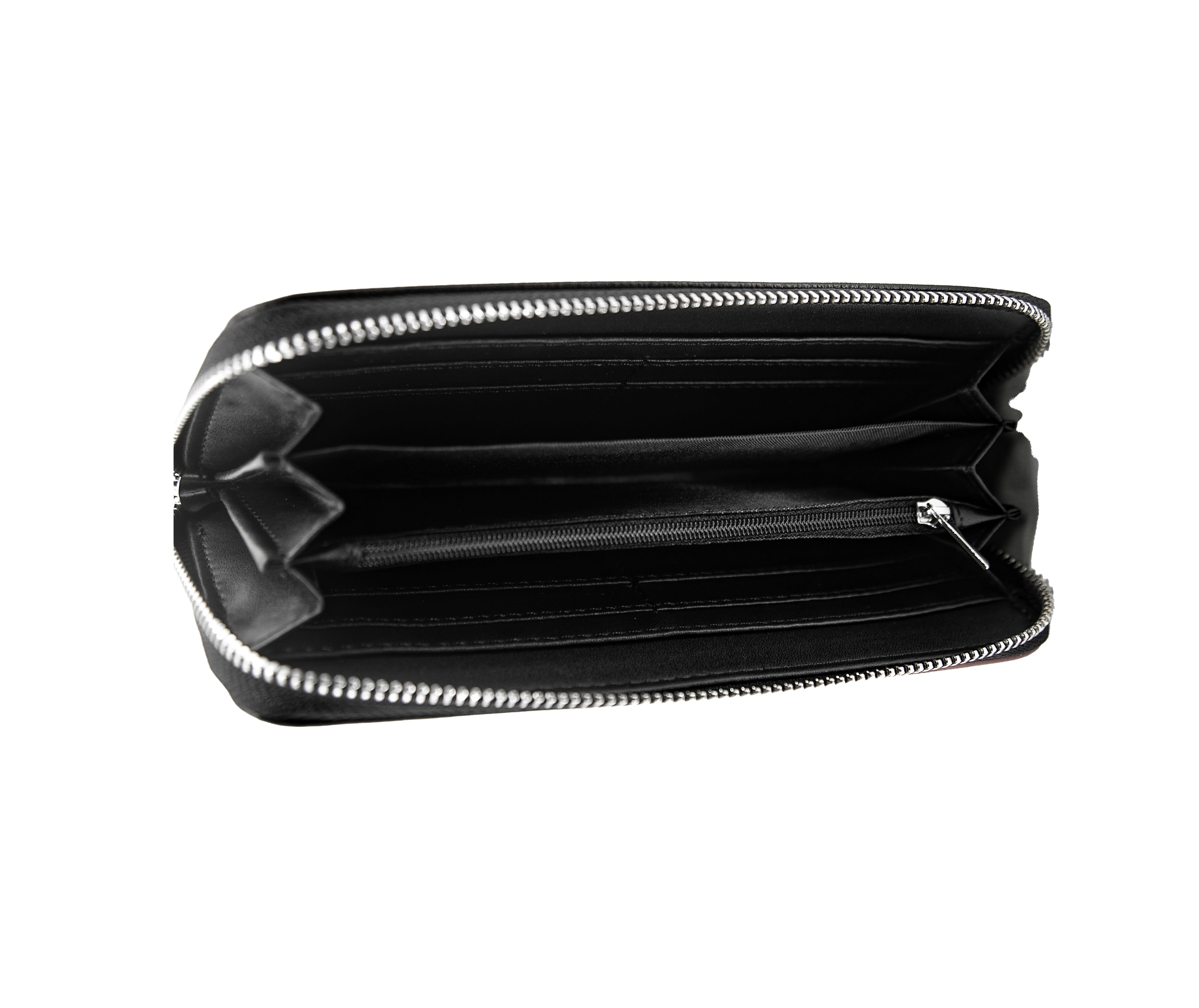 * Interior zip divider pocket, multiple currency slots & card slots.