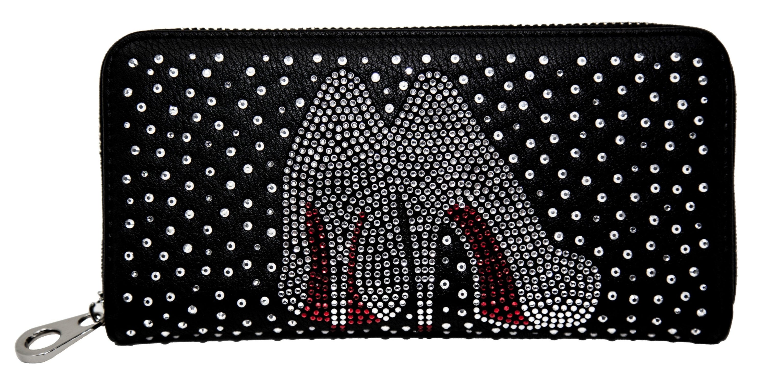 A classic accordion wallet goes glam with this design. Sparkling bling high heels and their famous red bottom.