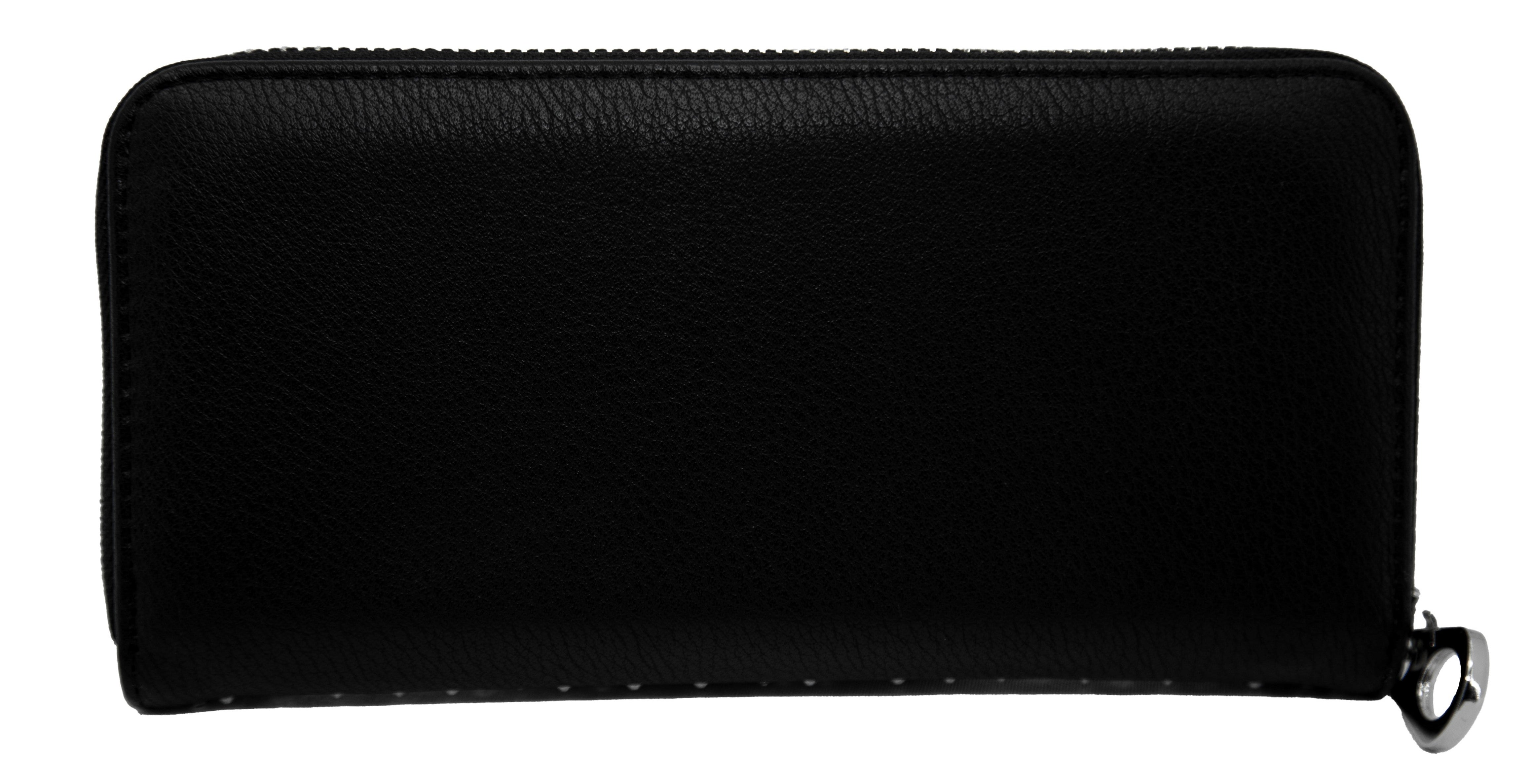 * Triple interior wallet with zip-around closure.