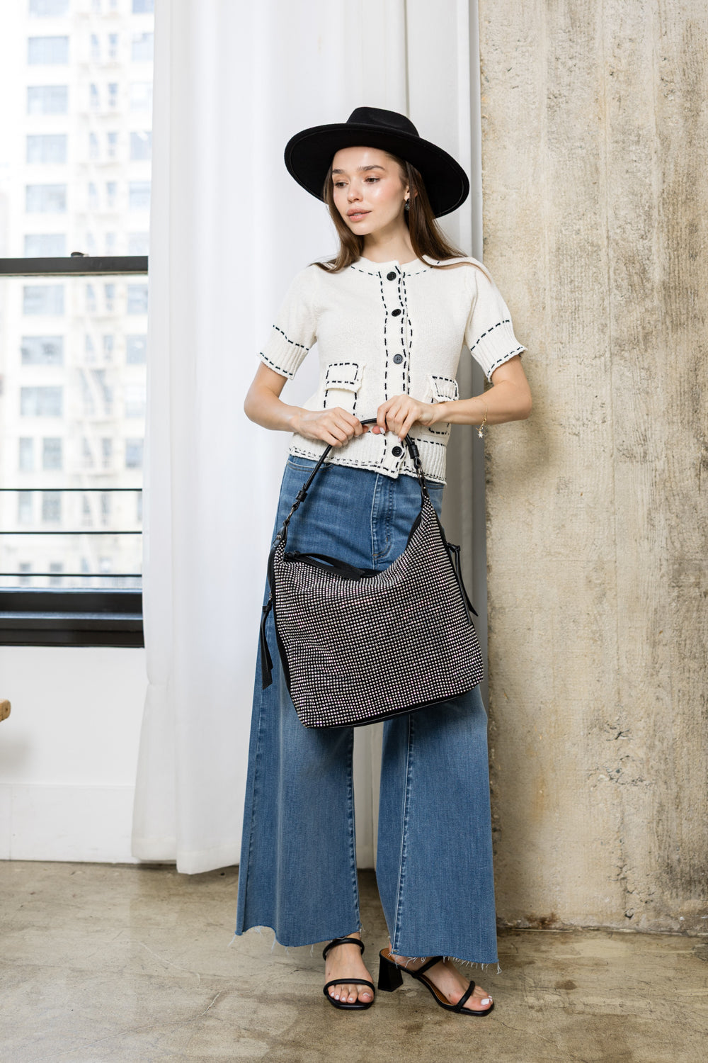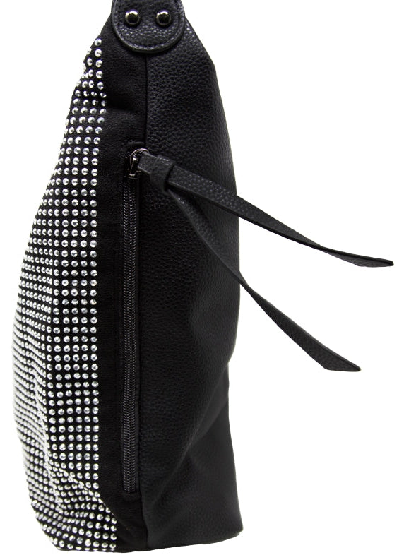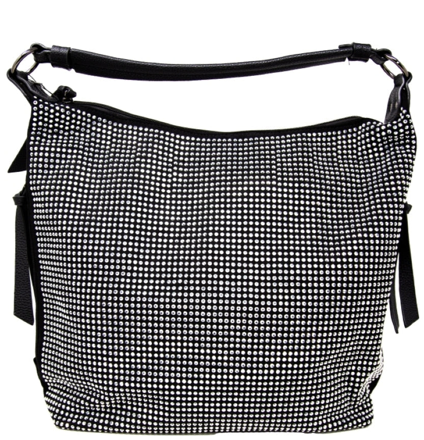 Make a shining statement of gorgeous style with this classic plaid print hobo handbag which happens to be covered in tiny stones!