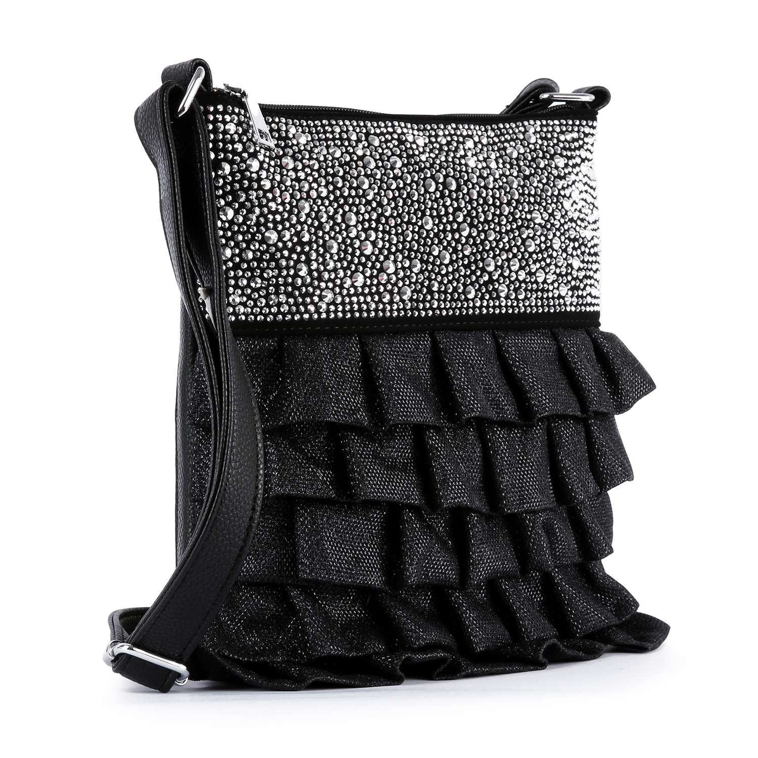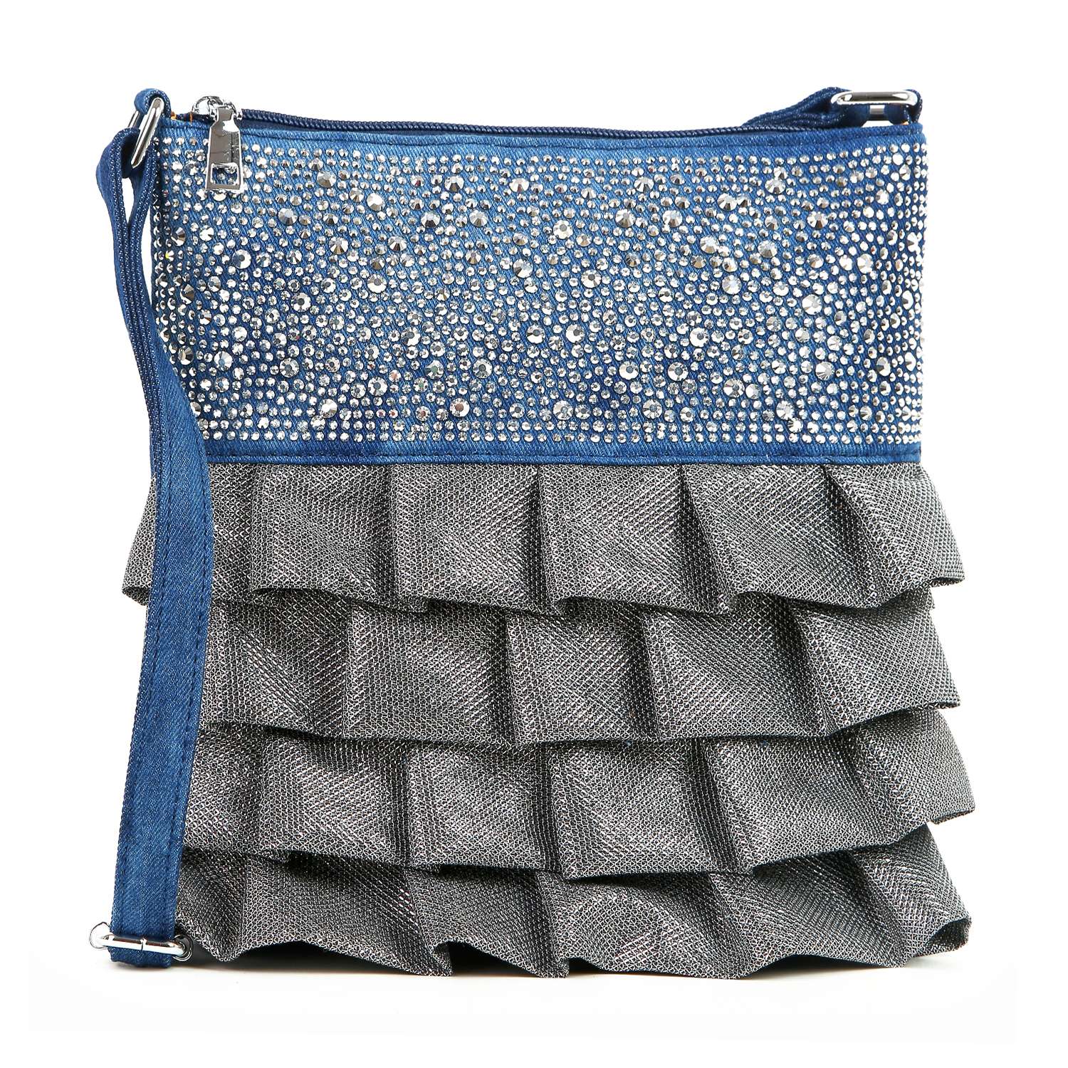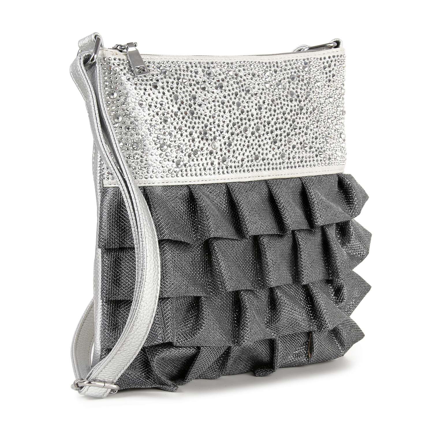 This unique sparkling accented crossbody features beautiful, dimensional layers that are guaranteed to turn heads!