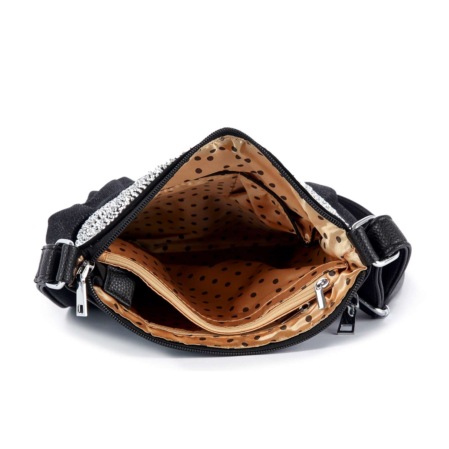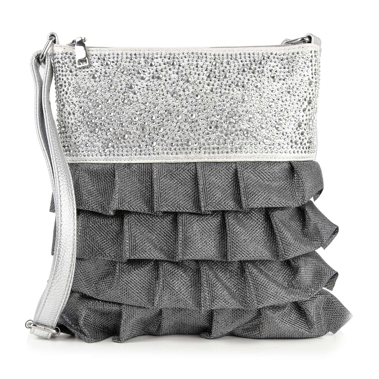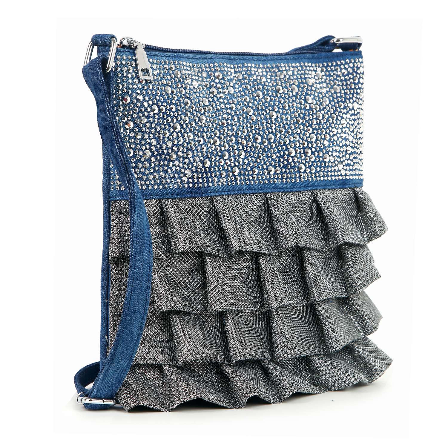 This unique sparkling accented crossbody features beautiful, dimensional layers that are guaranteed to turn heads!