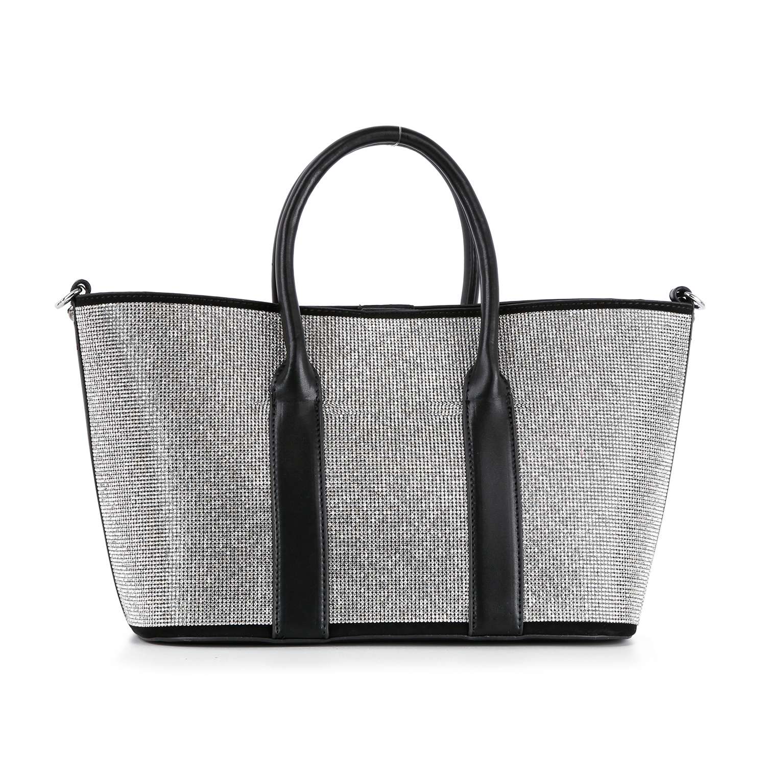 A rhinestone covered exterior is always an easy way to elevate any look, and this tote does set it right.