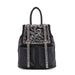 Add a serious dose of sparkle to your everyday look with this gorgeous backpack featuring a front flap covered in tiny, sparkling stones and woven pockets.
