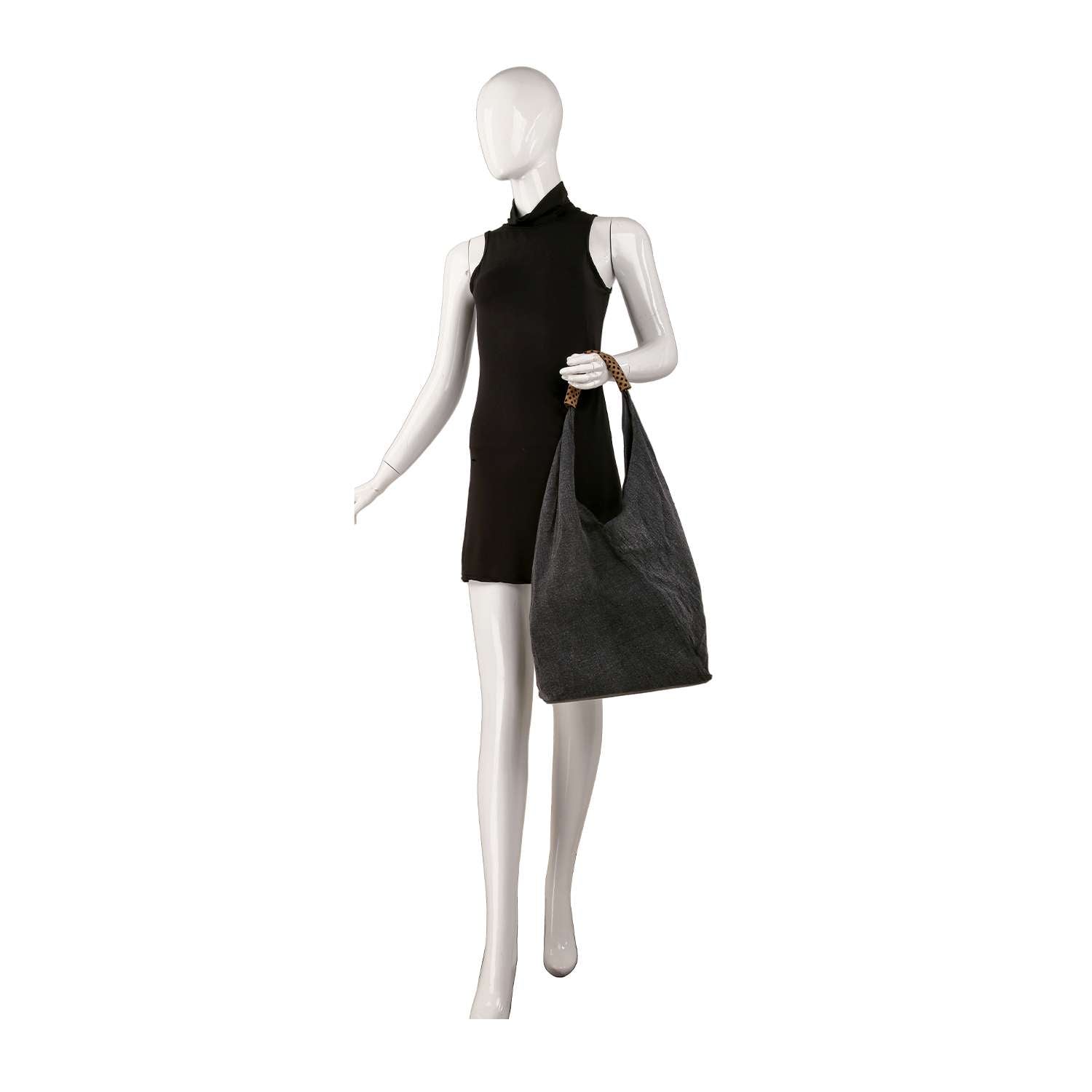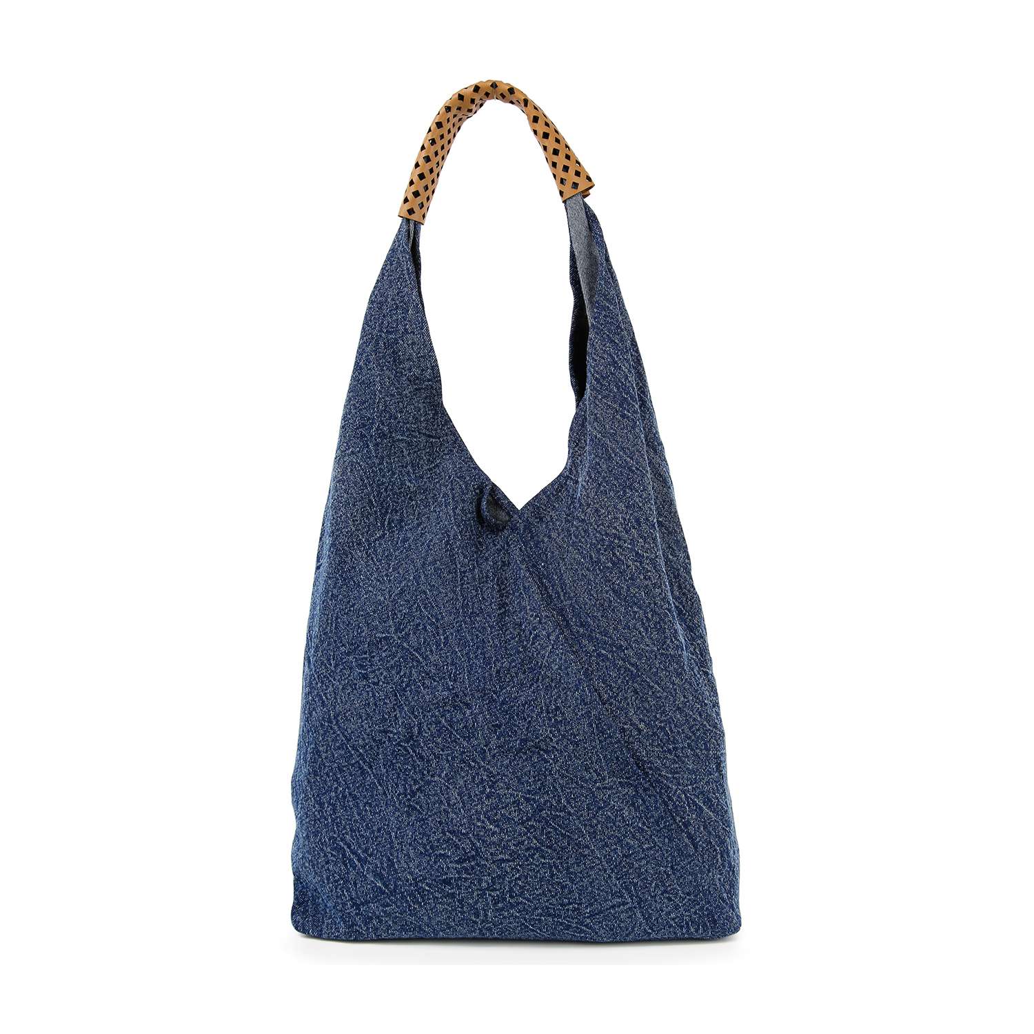 Fashioned from distressed denim, this full-sized bag also boasts a casual vibe that is sure to be noticed.