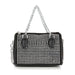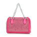 Shimmering rhinestones glamorously illuminate this petite evening bag which is expertly crafted and suspended from striking chain straps.
